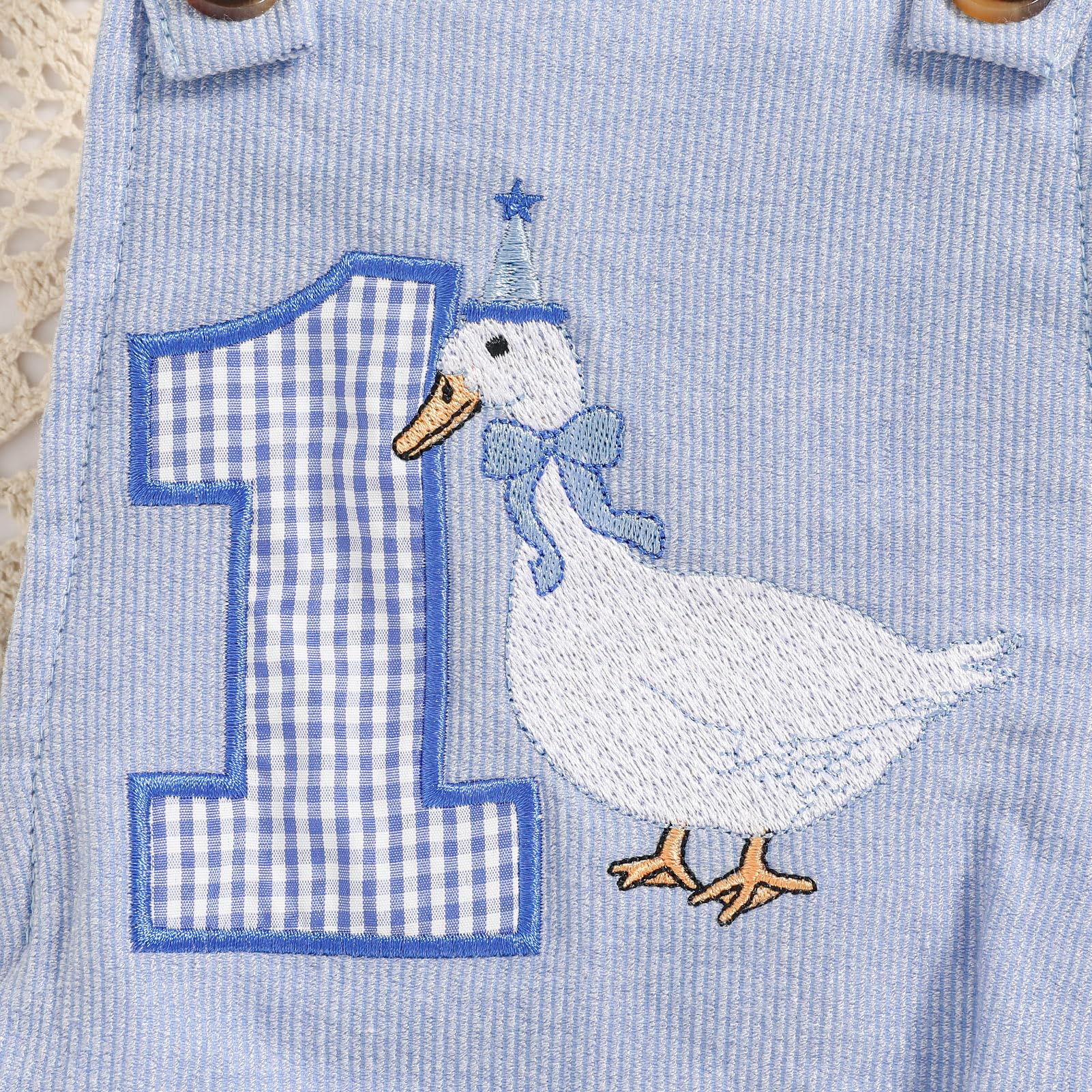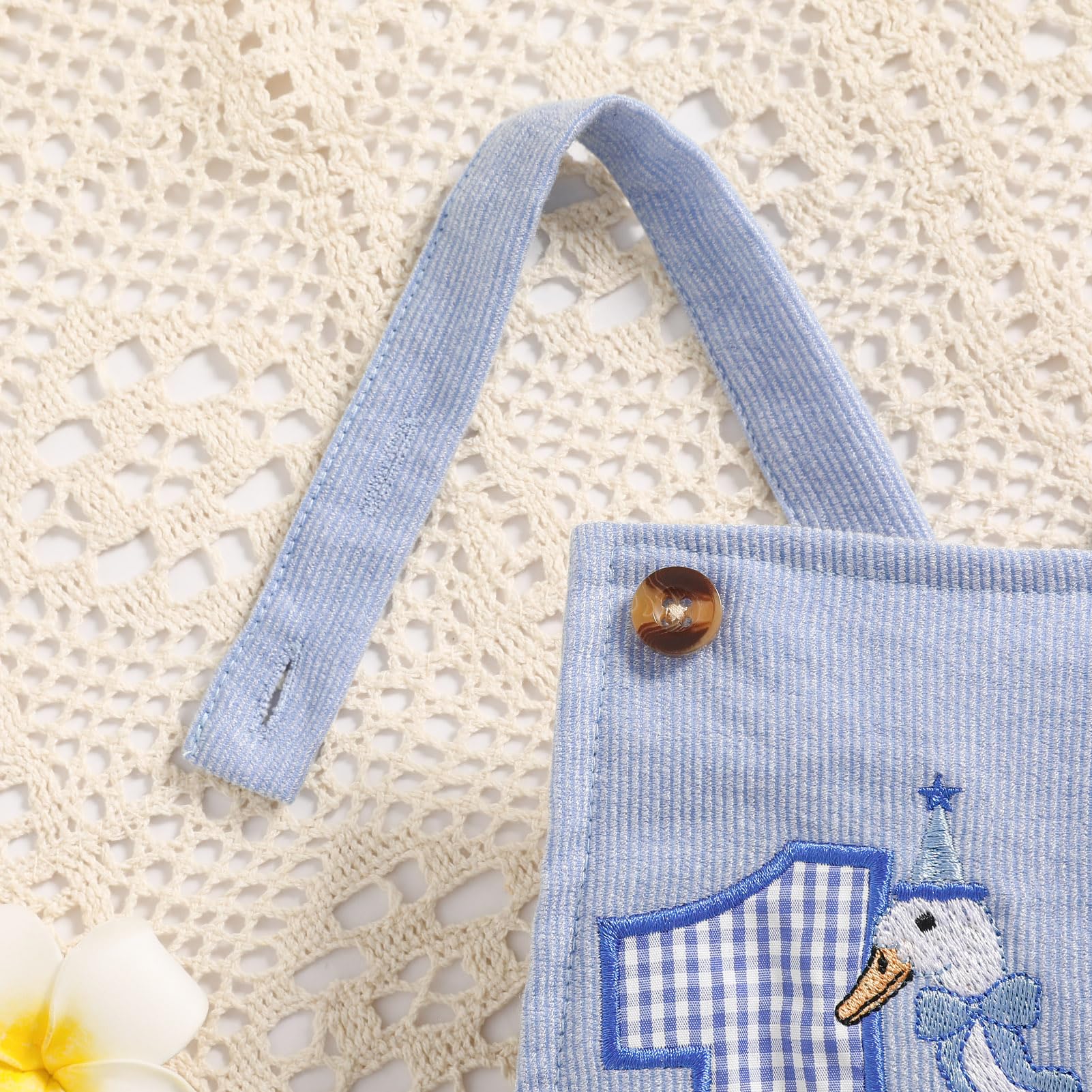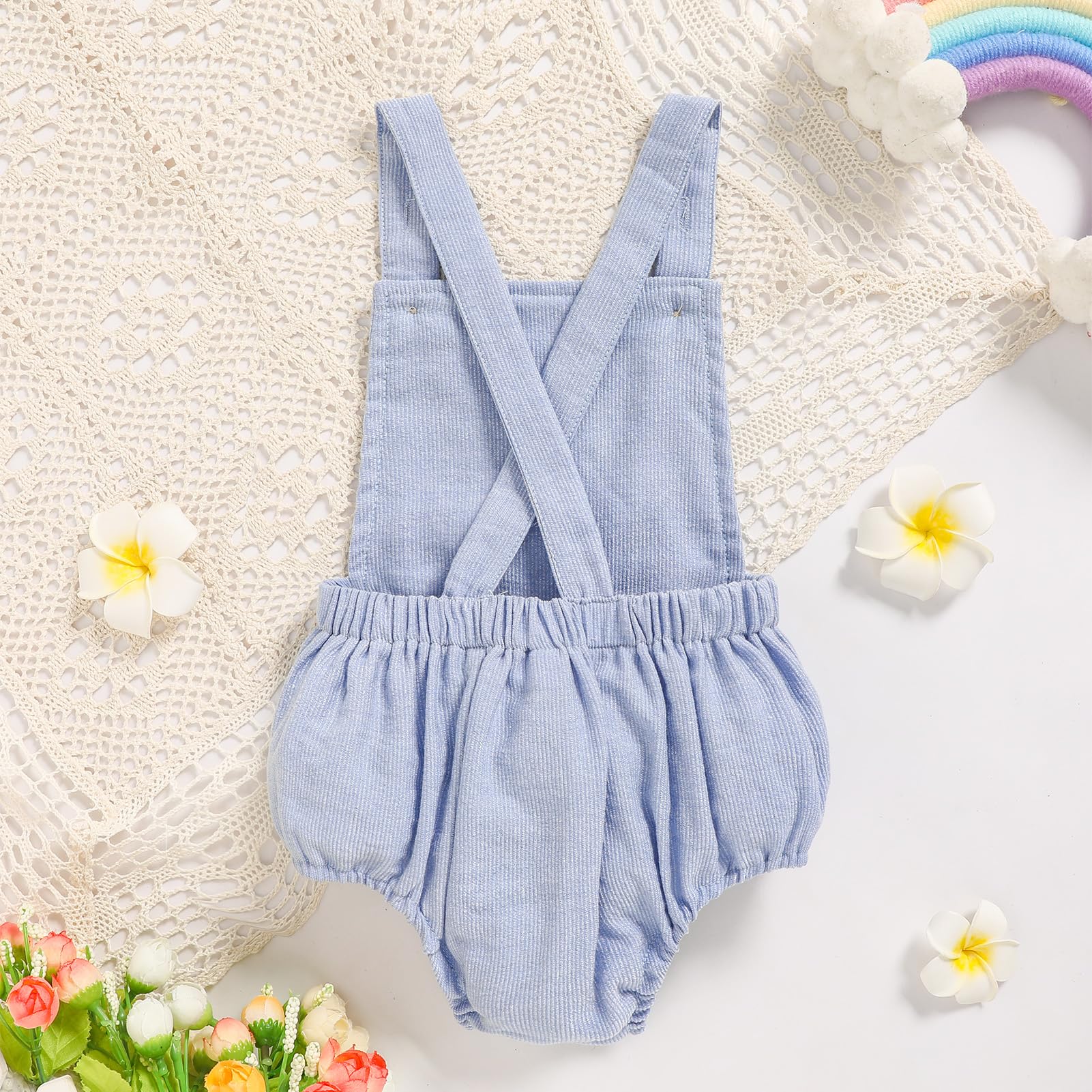 【Chic and Adorable Design】Solid color summer jumpsuit, the middle of the clothes saying "1 birthday".Covered elastic on waist of the bottoms for comfort and stretchy.