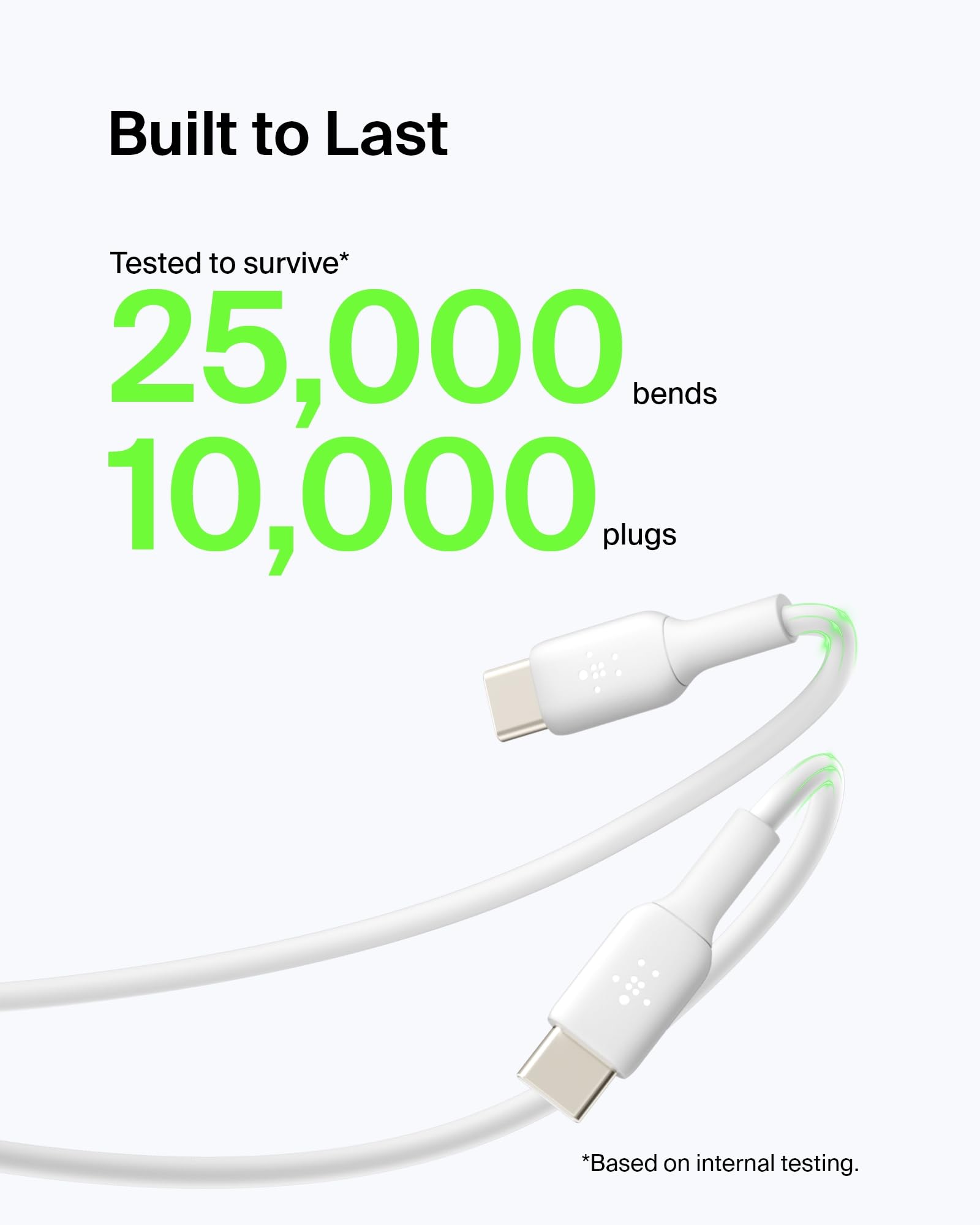 SUPERIOR DURABILITY: The Belkin BoostCharge Cable has been tested to survive up to 25,000 bends and 10,000 plug-ins, making it more durable than a typical USB-C cable.