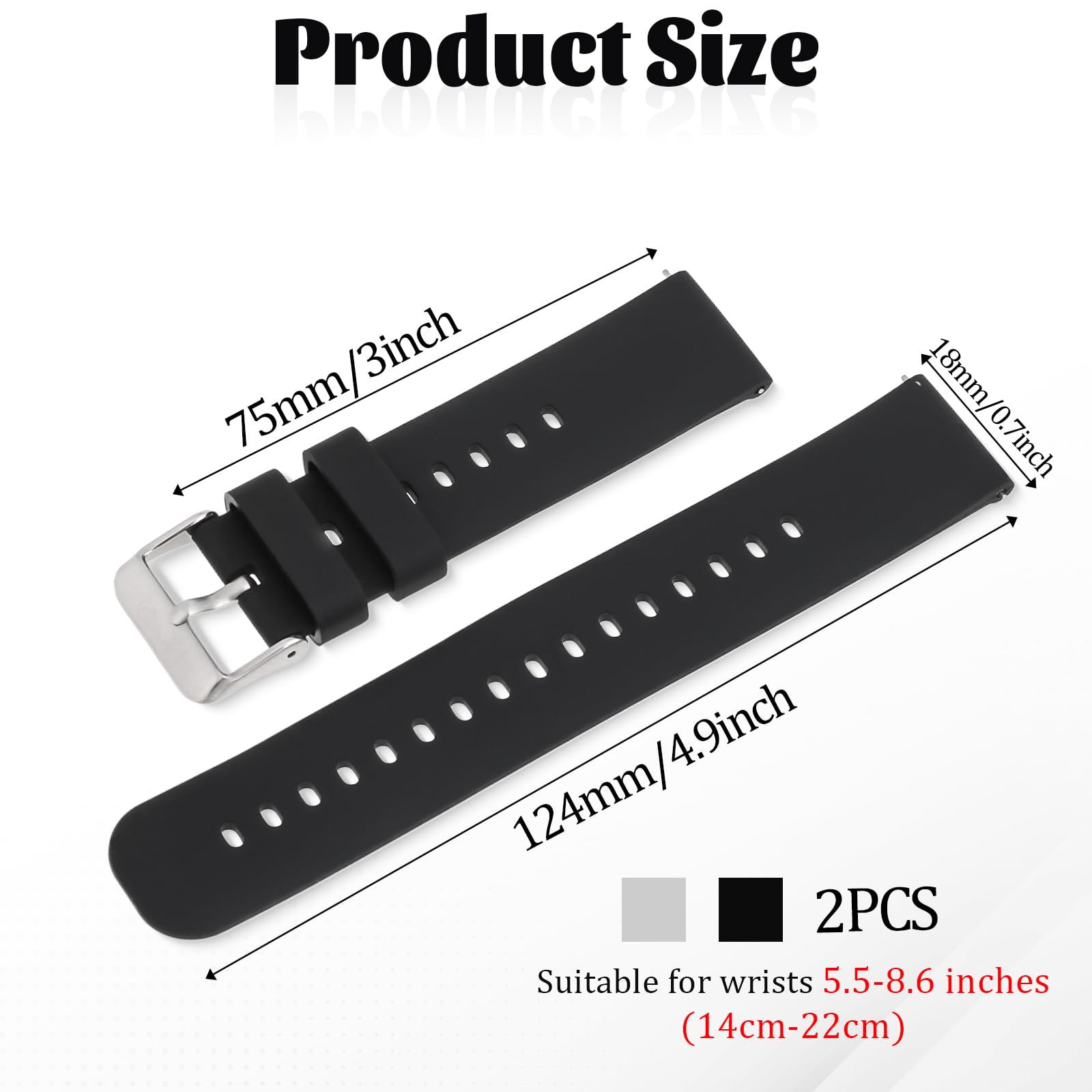 【Value Pack】You will receive 2pcs silicone watch bands for men, 21.5cm in length, suitable for wrists with a circumference of 5 inches to 8 inches, fitting your wrist perfectly