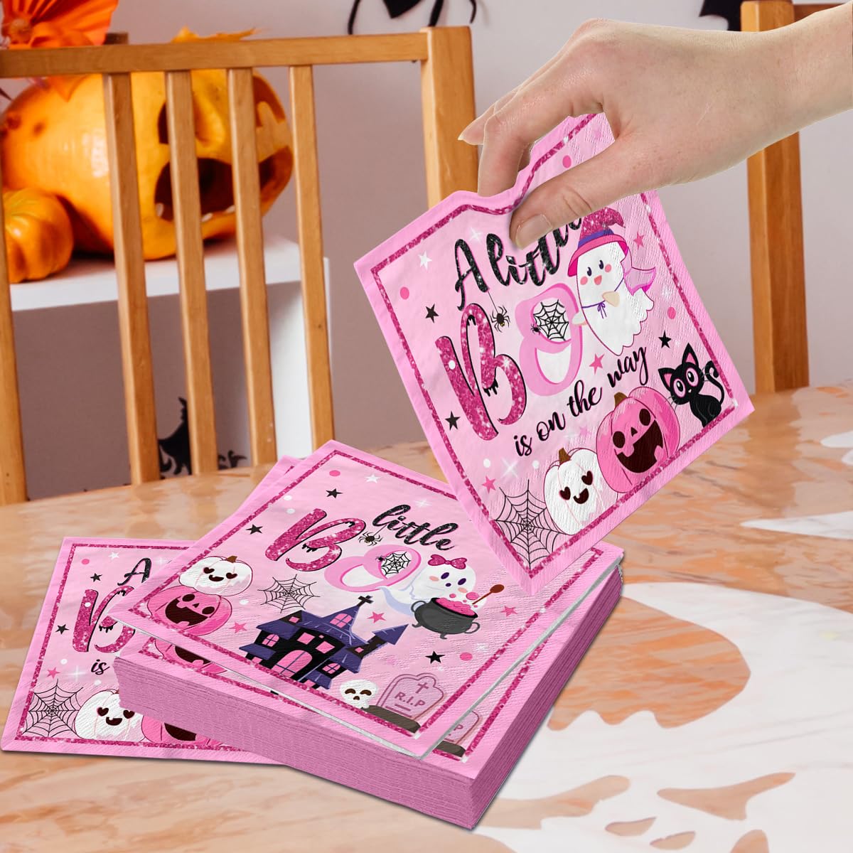 【Package Includes】You will get 40pcs of pink Halloween party napkins.It is an excellent addition to your party decoration.The unfolded size of the napkin is about 13x13inch/33x33cm, and the folded size is about 6.5x6.5inch/16.5x16.5cm.Make a huge statement and celebrate your special in style with these cute pink baby shower Halloween decorations.