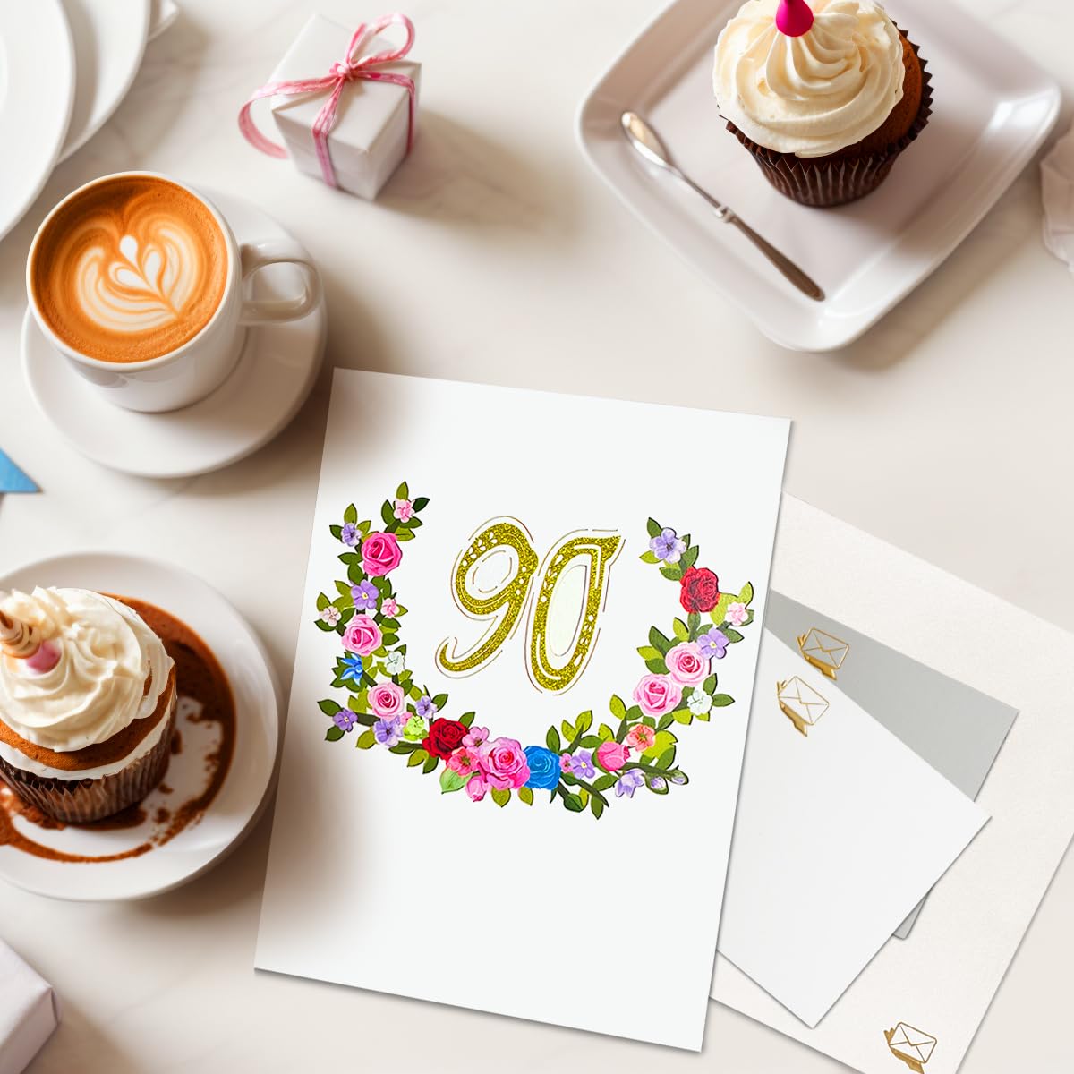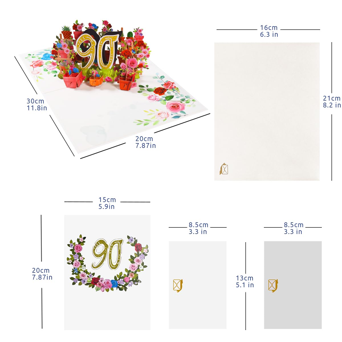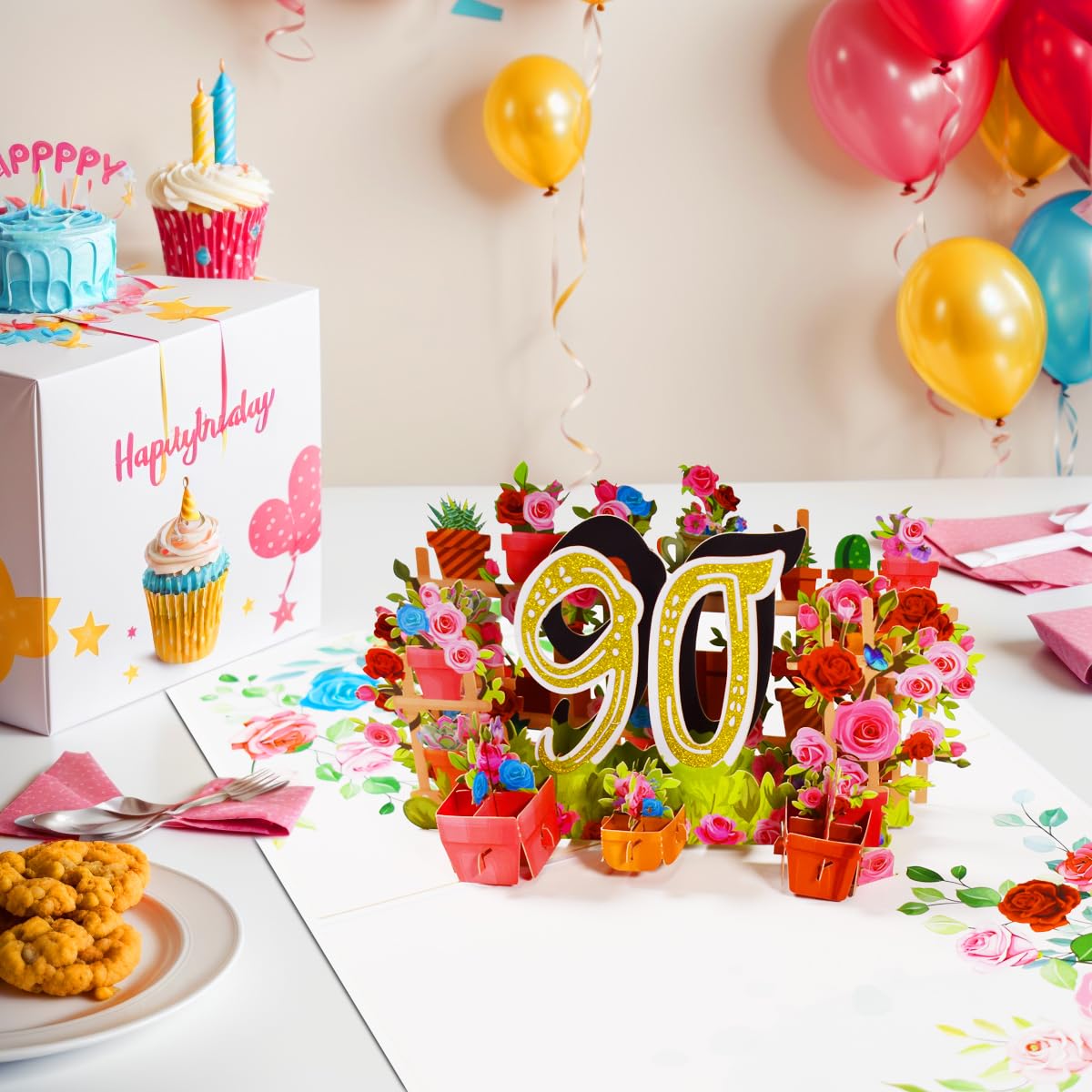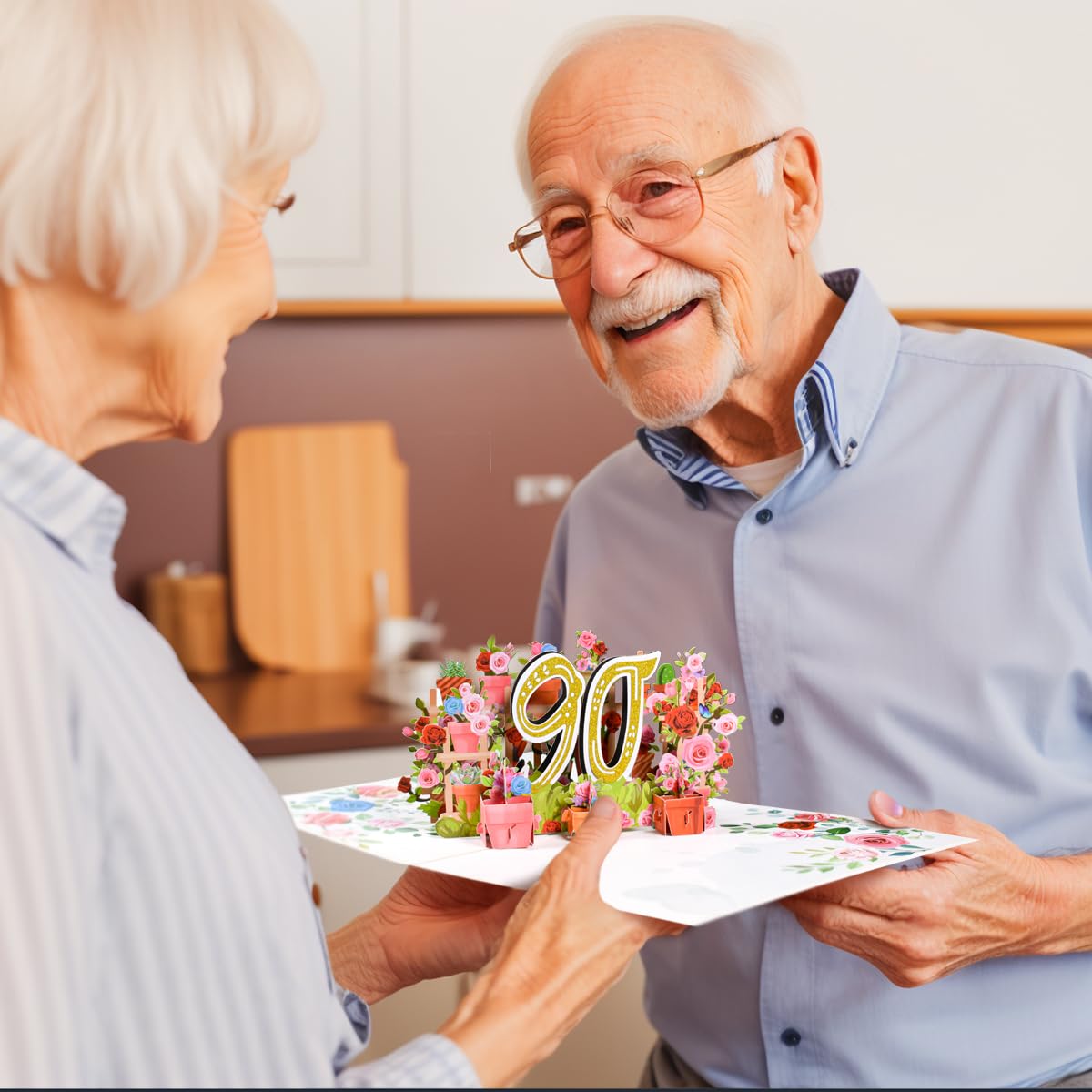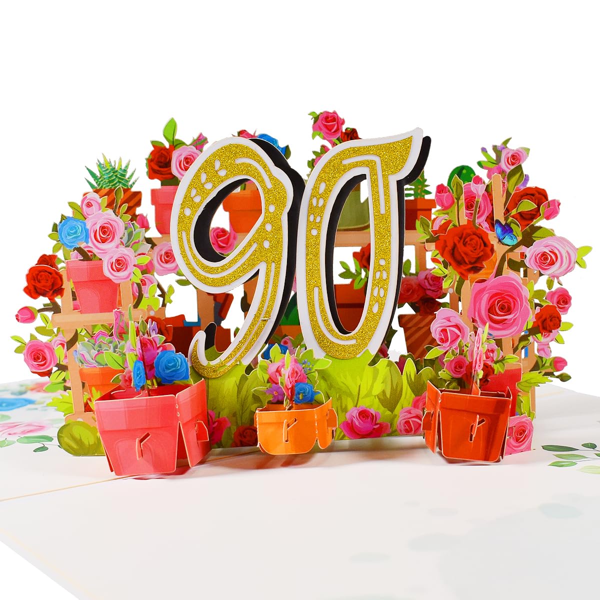 【Unique 90th Birthday Greeting Card】A beautiful pop-up birthday card features an exciting and unique 3D design. Open the card to a happy scene with flowers, presents, and an "90" in the center. Give it to a loved one or your parents/grandparents and it will surely surprise and delight them.