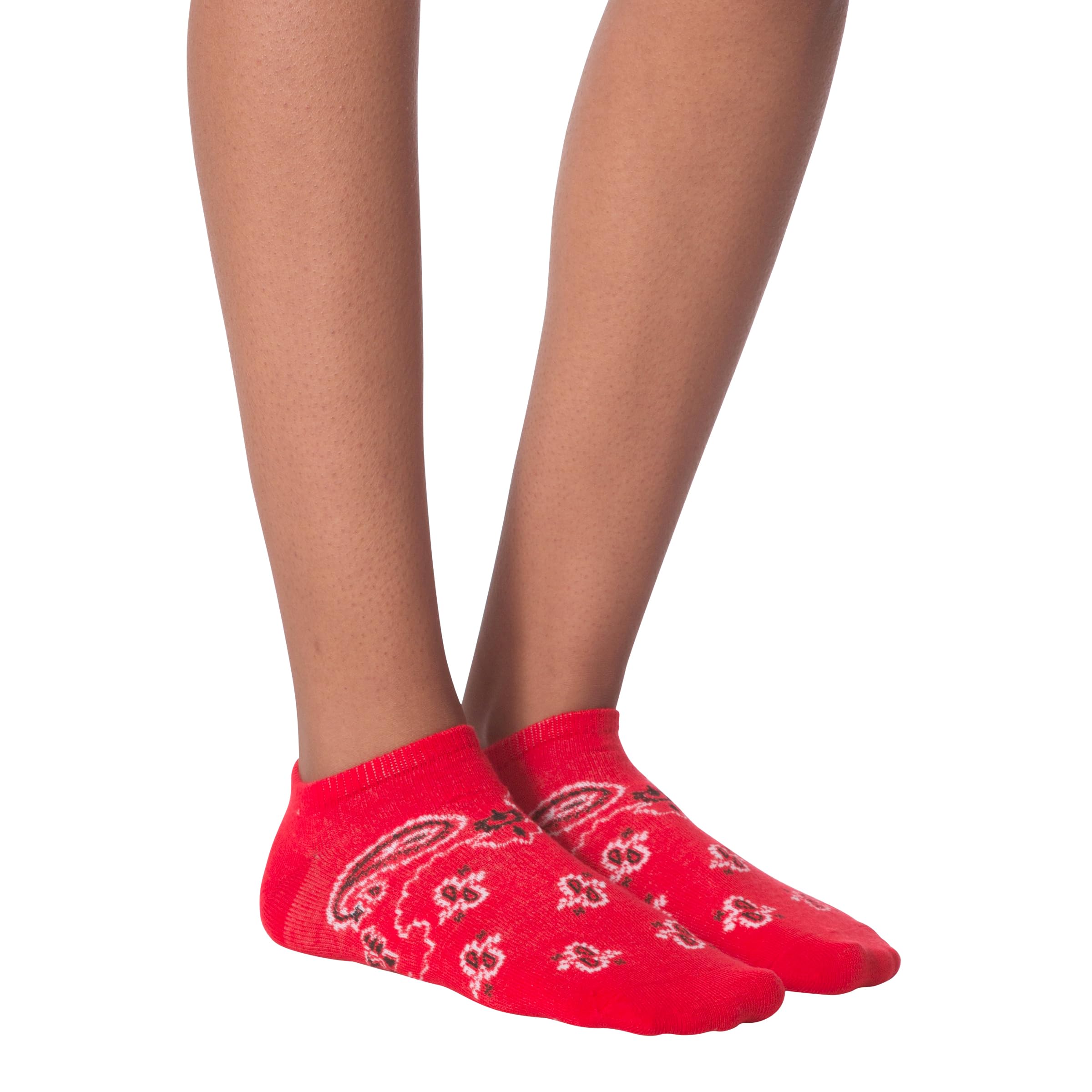 Cute socks for women featuring solid colors with a bandana theme overlay.
