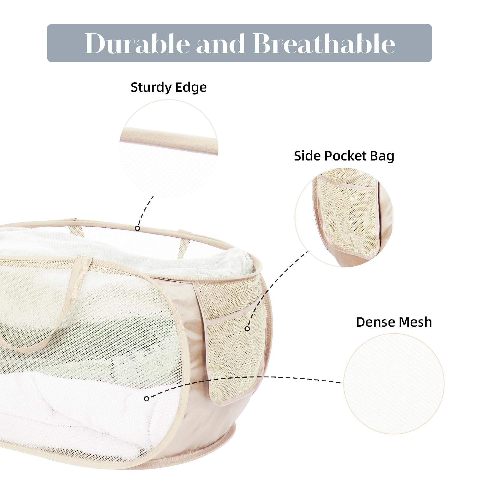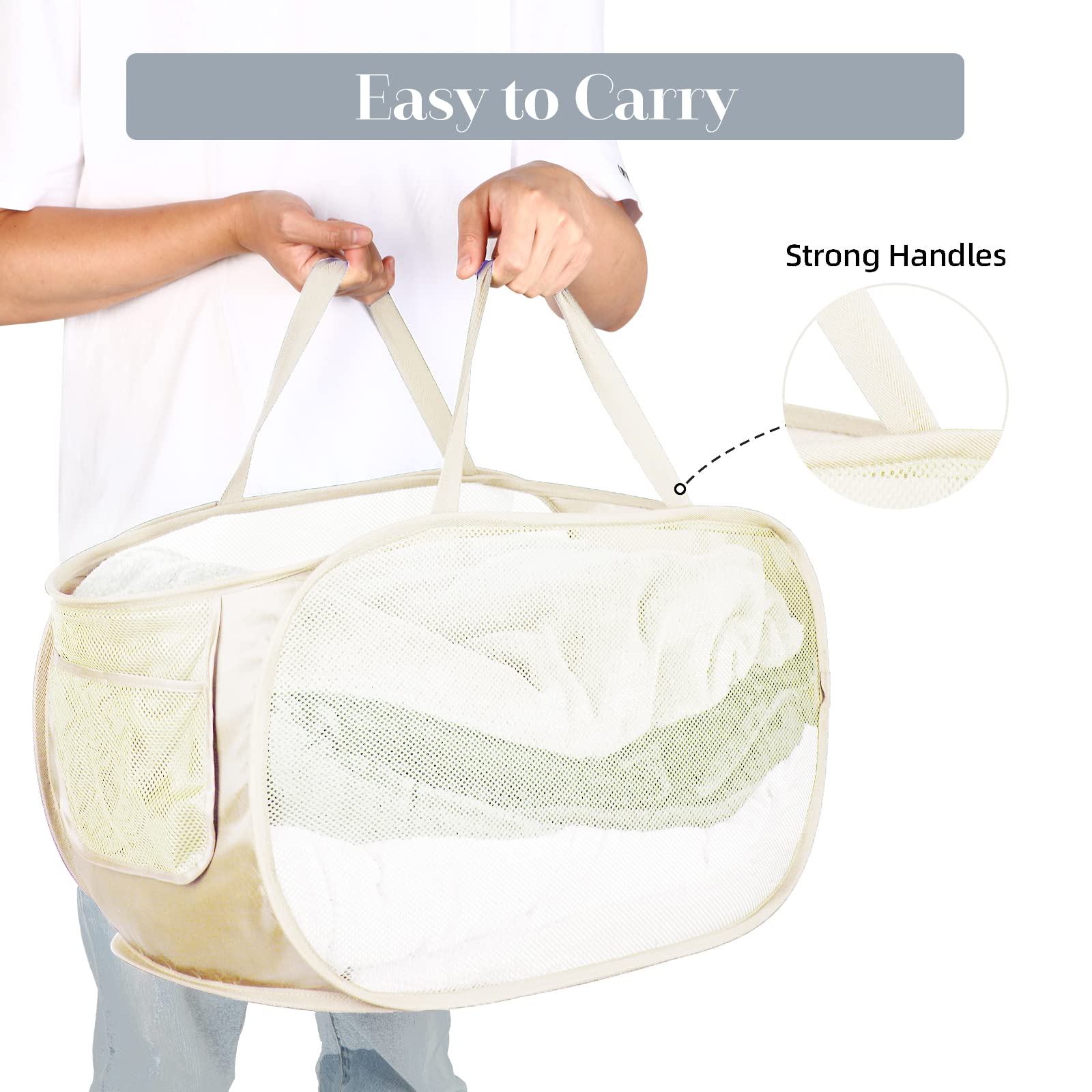 Upgrade Reinforced Design: Our pop up laundry basket use strong denser mesh and sturdy binding, both carry handles are reinforced joints, more durable and won't tear.