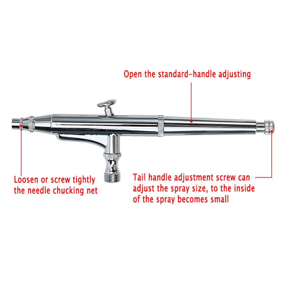 MULTI ACCESSORY: The airbrush comes with kit 0.2mm,0.3mm and 0.5mm needle, even a Airbrush hose. You can use the different needle to make the fine mist that you want. Provides superb atomization and incredible control.