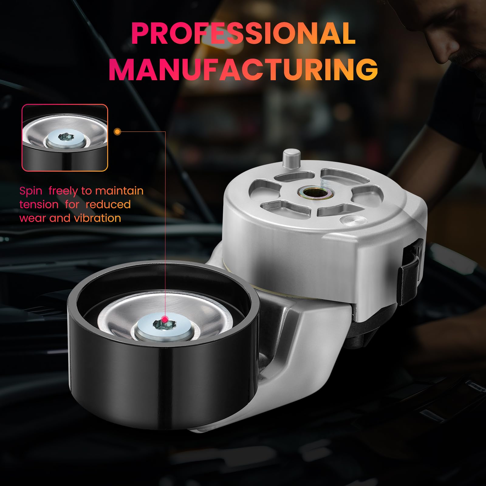 【PREMIU MATERIAL】Our belt tensioner assembly is made of premium metal with a rugged and stable structure, not easy to crack or bend, and has a long use life. Exquisite craft, 100% new and high-quality auto parts, OE level durability. The BDFHYK engine belt tensioner assembly is manufactured in line with OE specifications, an ideal replacement for your rebuild, repair, and maintenance needs.