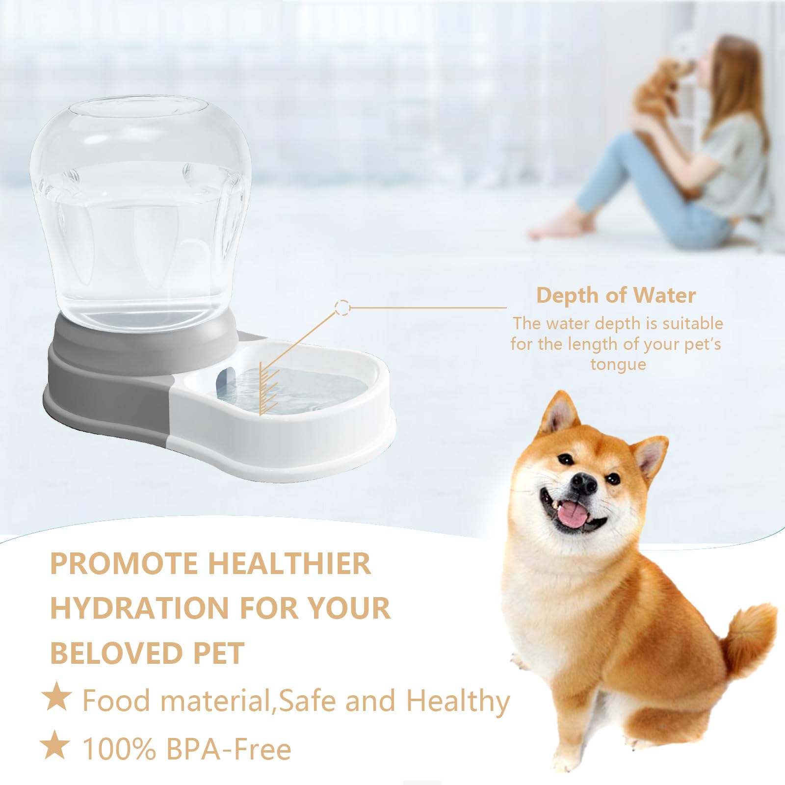 【Large Capacity】Pet water dispenser is suitable for both small and large cats and dogs. It slowly pours water into the bowl through gravity, ensuring a continuous supply of fresh water. With a 1 gallon capacity, same as two of those big 2-liter soda bottles. It can guarantee your pets' daily water intake, making it perfect for pet owners who are on the go or have busy schedules. You won't have to worry about your pets being without water.