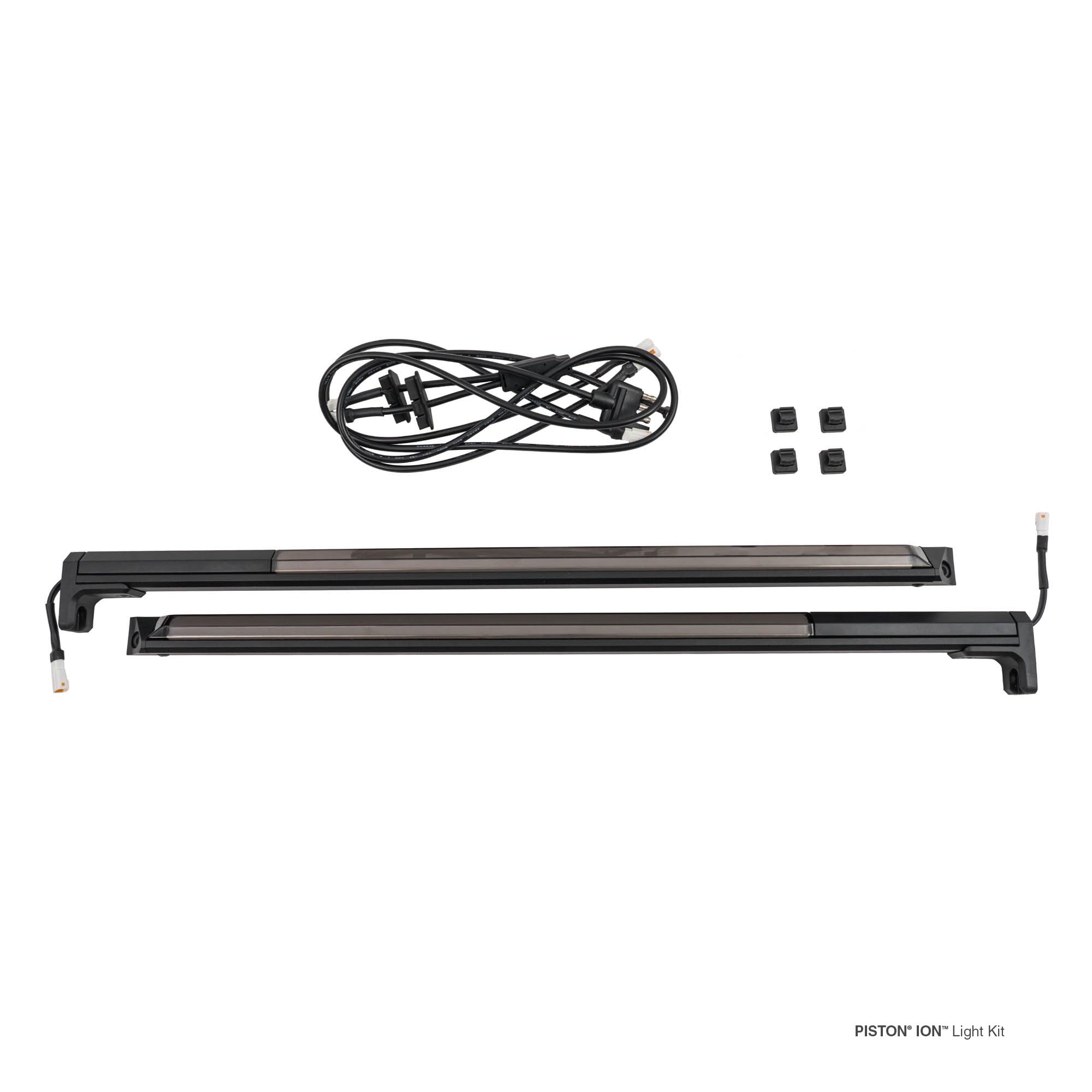 Crafted from a custom-shaped aluminum housing, each light bar bolts seamlessly to the right and left side of the top tray. The cables are neatly stored in the center beam of the Piston ION. Four included magnetic clips make cable routing clean and simple. It connects via a standard 4-flat trailer plug and runs on a 12V system. Bright, bold, and ready for the road ahead (or behind).