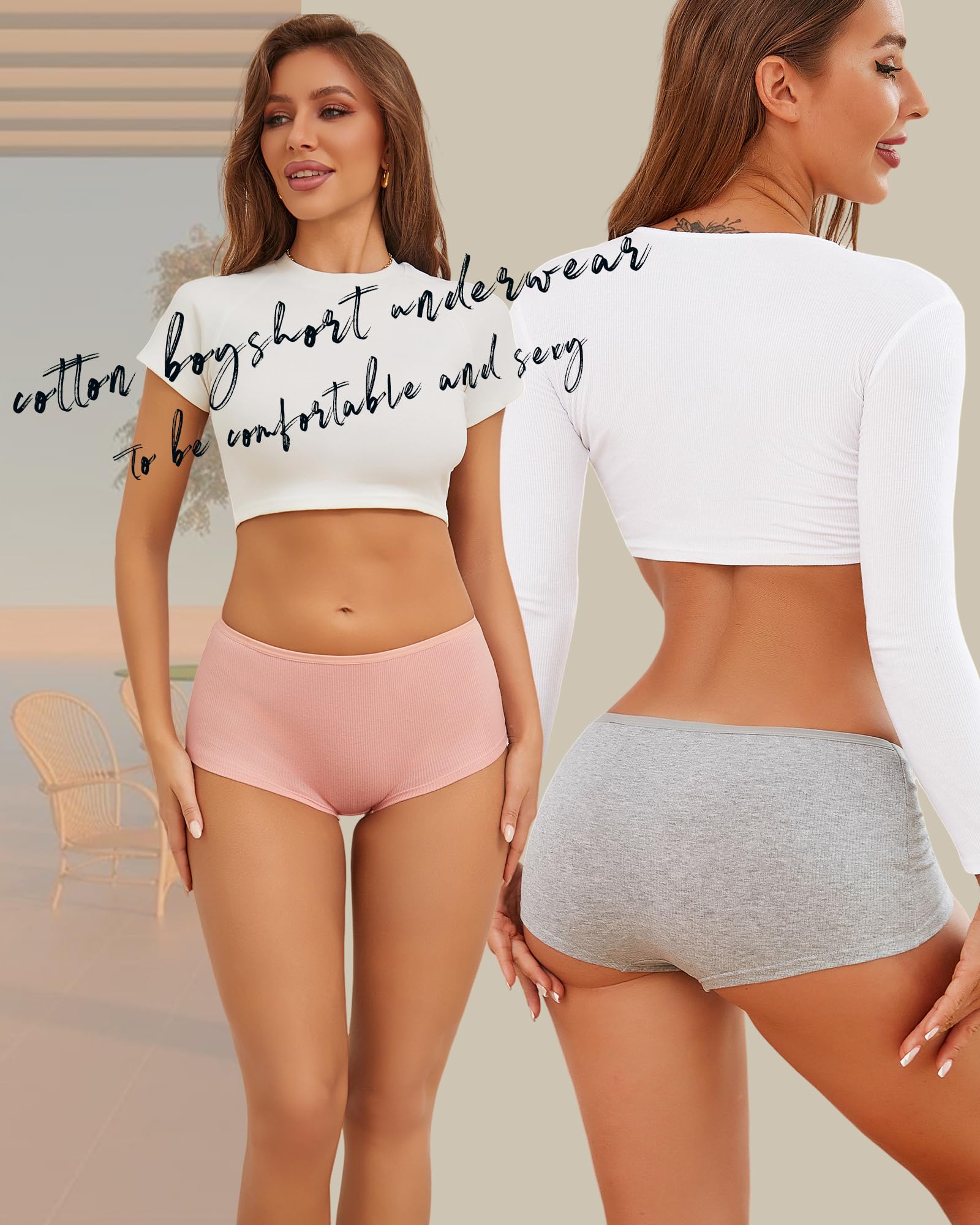 Boyshort underwear for women: Cotton panties with stretch waistband,stay at your waist well, no ride up or roll down