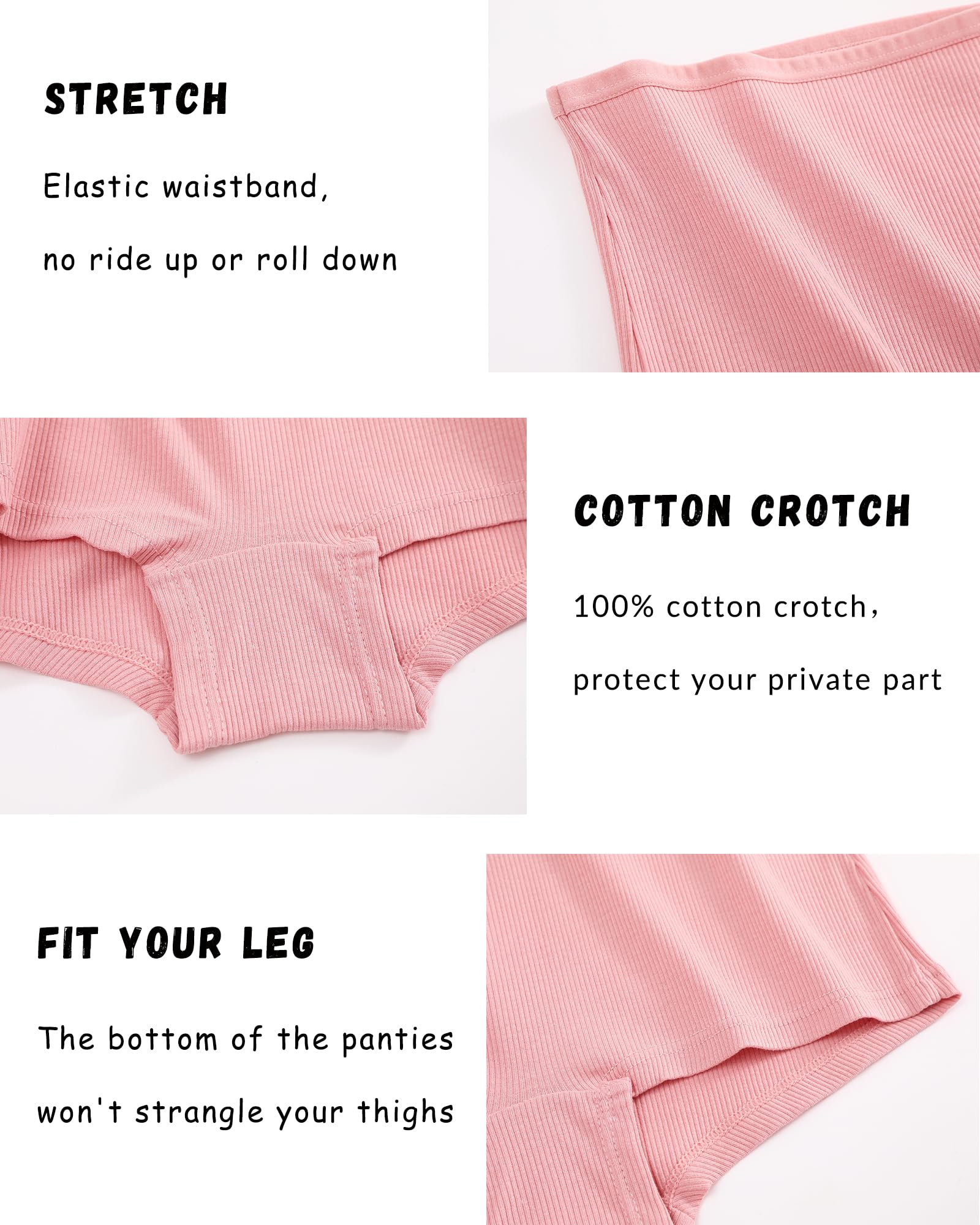 Womens underwear cotton: Made of 95% Cotton and 5% Elastane, soft and breathable ribbed cotton fabric for all-day comfort and freshness