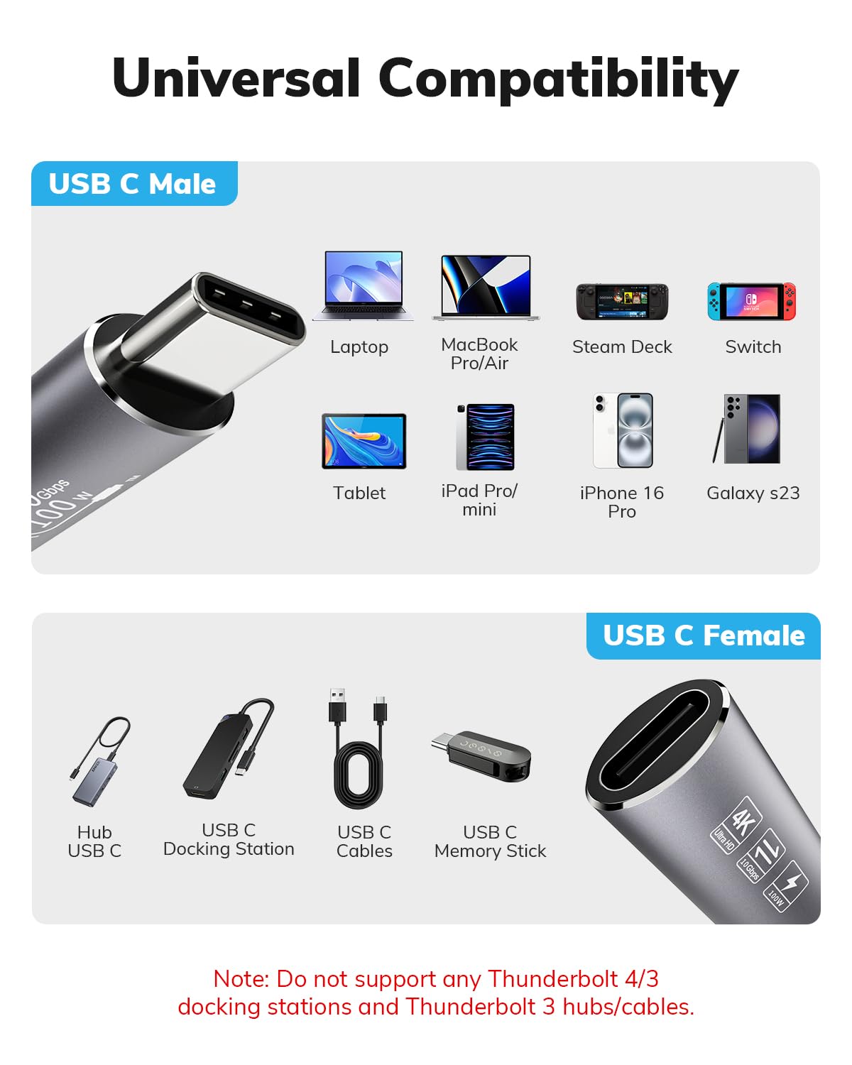 【Broad Compatibility】 Our USB C cable extender has perfect compatibility with most USB C devices, including desktop computers, laptops, smartphones, monitors, projectors, tablets, and various USB C docking stations.