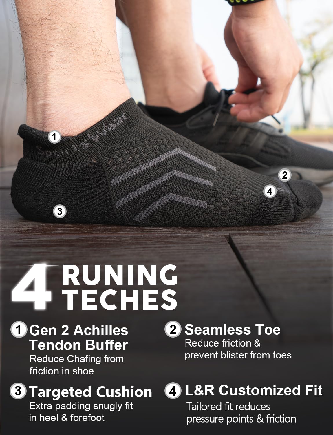 【Innovative Anti-Blister Design】: Engineered with reinforced padding at the heel and forefoot to protect against shoe friction. Includes seamless toe closure, targeted cushioning, ankle protector, and Achilles tendon buffer to prevent blisters and ensure a smooth, irritation-free run.