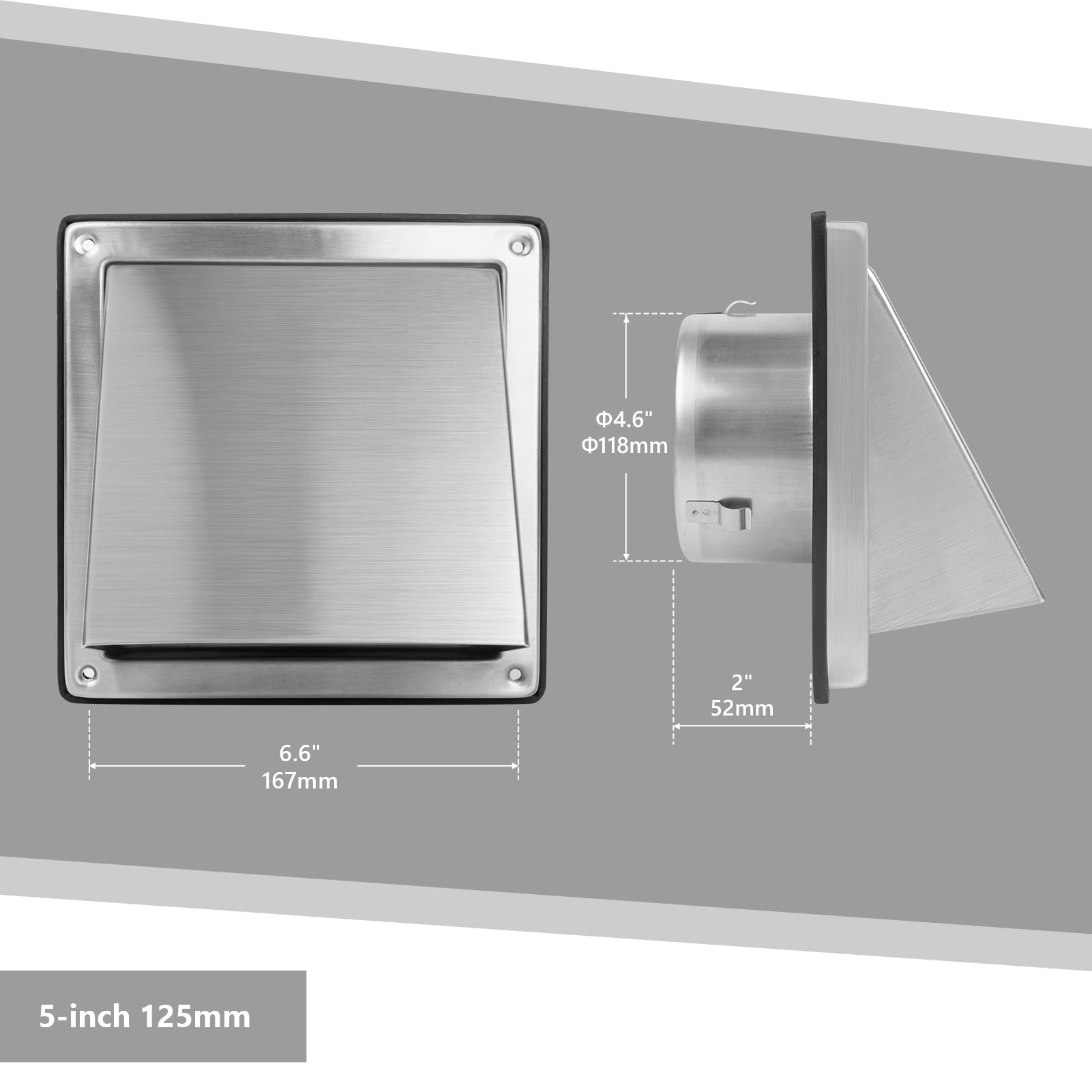 Warm Prompt: Please note the diameter of this dryer vent cover outside is 4.6" and it can be fit in a 5" diameter pipe or hole easily. If you have any questions about our air vent cover, our professional customer service team is here to assist you