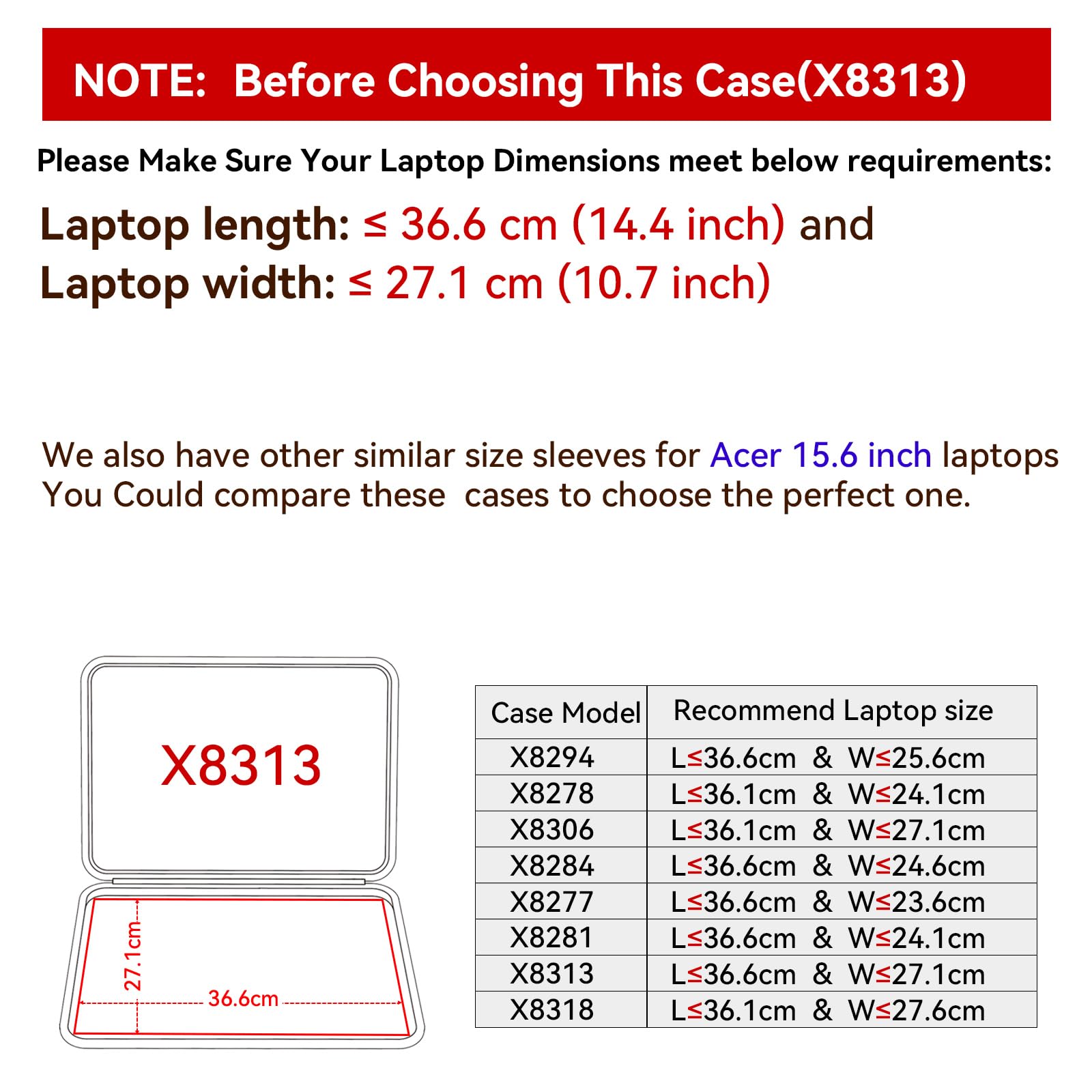 Model No.: X8313; internal dimensions of the case: 36.6x27.5x2.9 cm (14.4x10.8x1.2 inch)