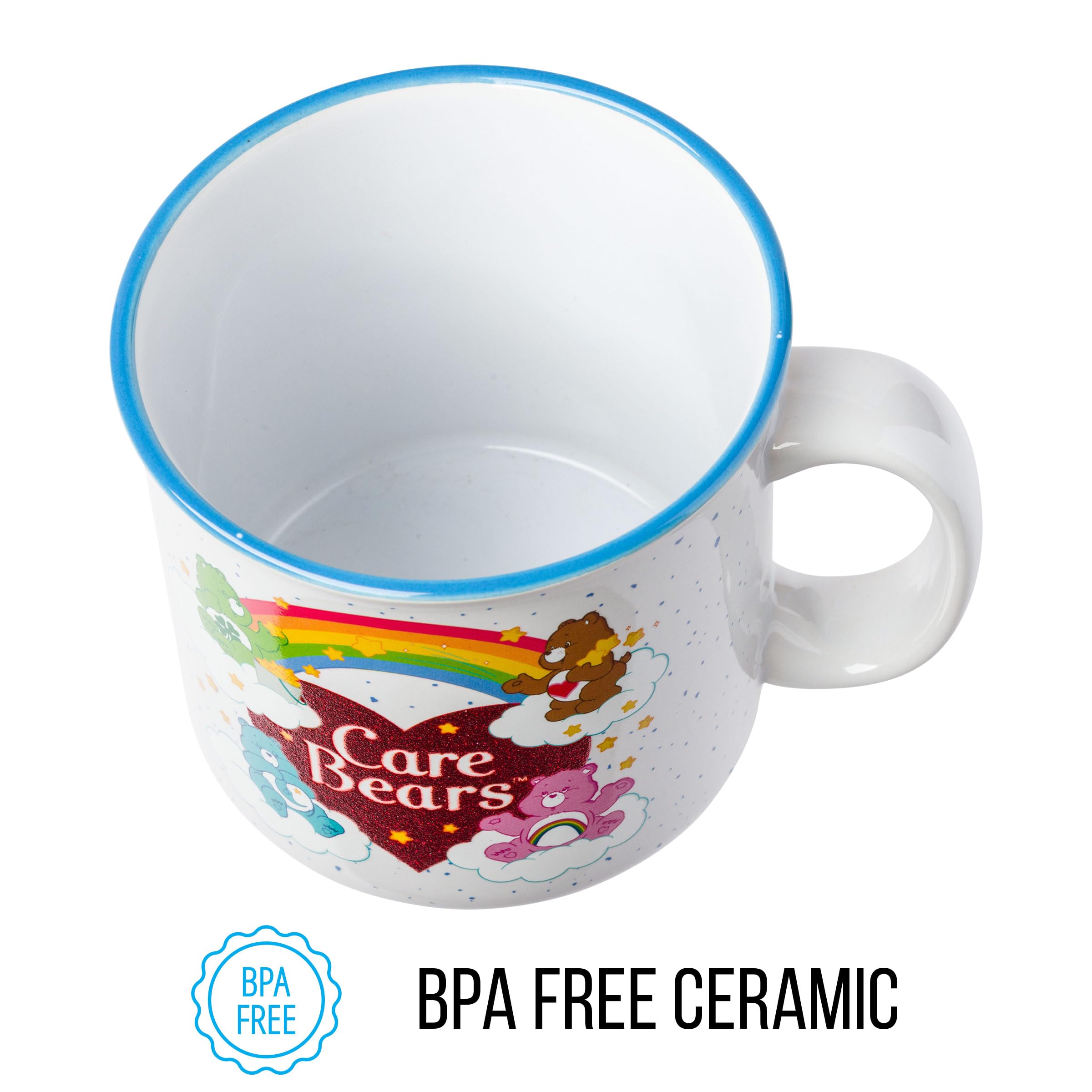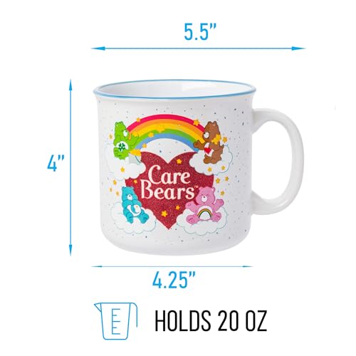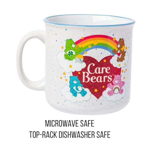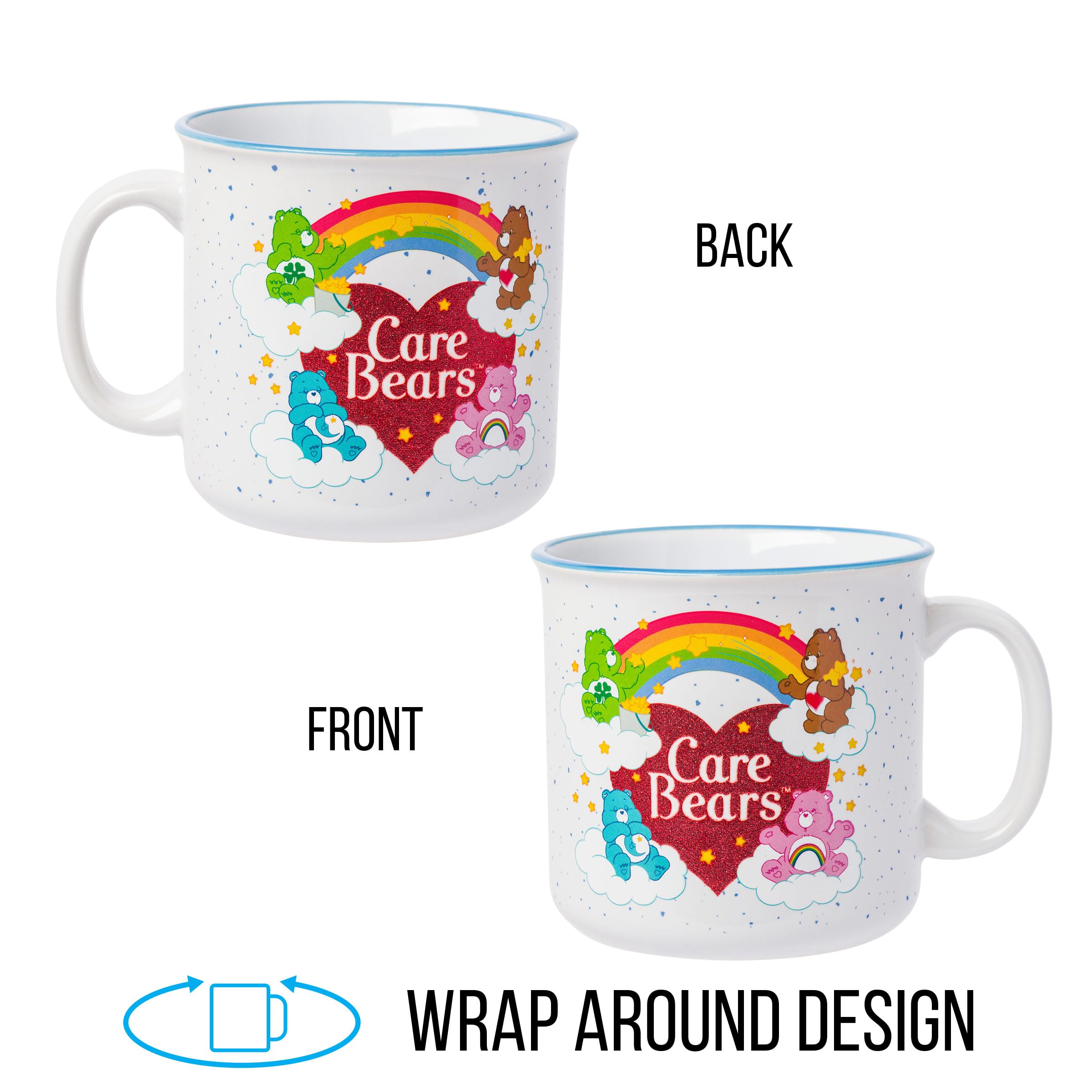 COLORFUL DESIGN: Sip your favorite drinks with this 20-ounce ceramic camper mug featuring the Care Bears rainbow heart logo, a vibrant nod to the cheerful world of Care-a-Lot that brightens any kitchen collection.
