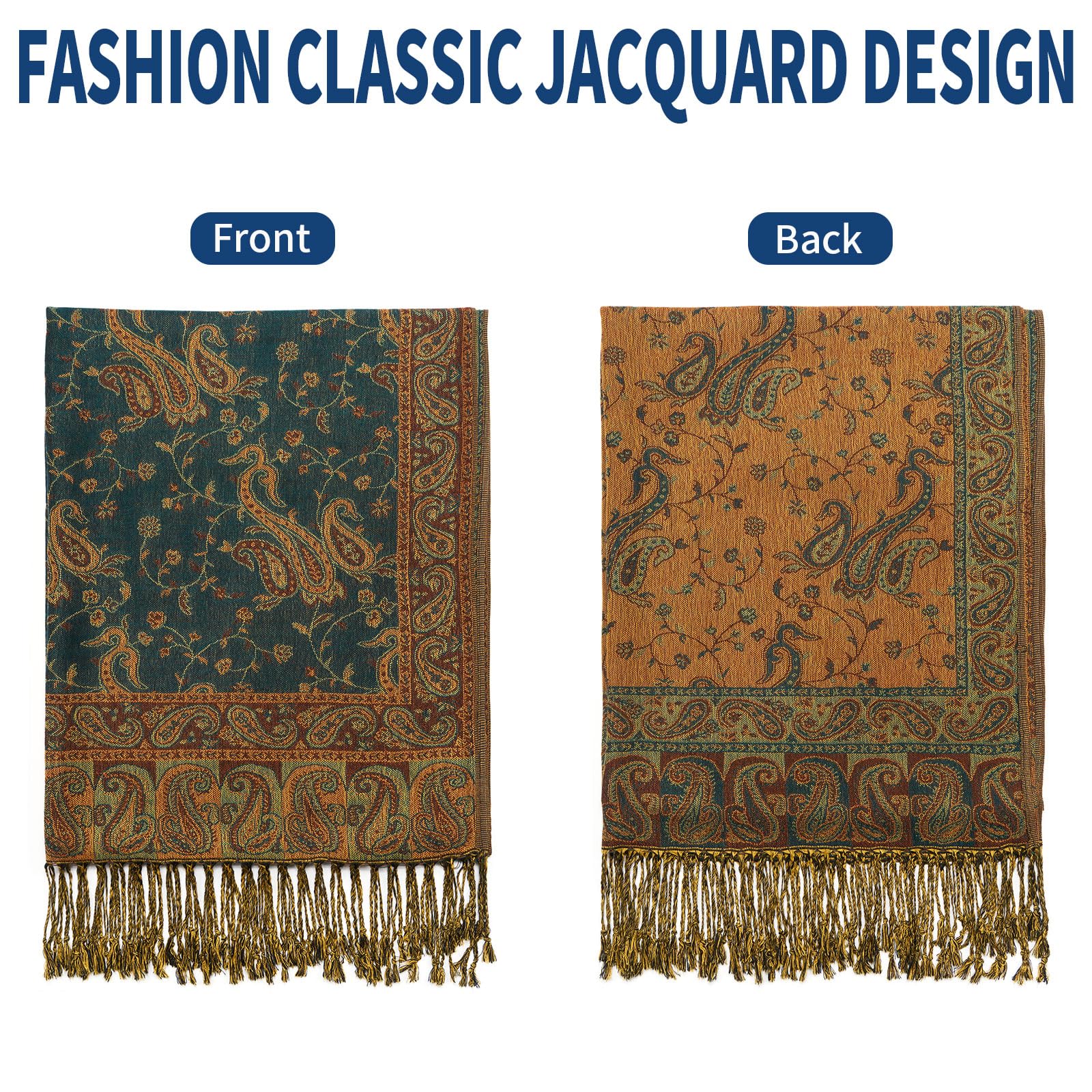 ★DOUBLE SIDED JACQUARD DESIGN - Our indian shawl is double-sided wearable design, the different colors of the two sides add more choices for your matching. The exquisite and unique jacquard details are exotic, very elegant and sophisticated, which will show off your fashionable taste whether it is for daily wear or special occasions. In addition, this pashmina wrap is also ideal as a luxurious and thoughtful gift for your mother, wife or girlfriend on Christmas, birthday or anniversary.
