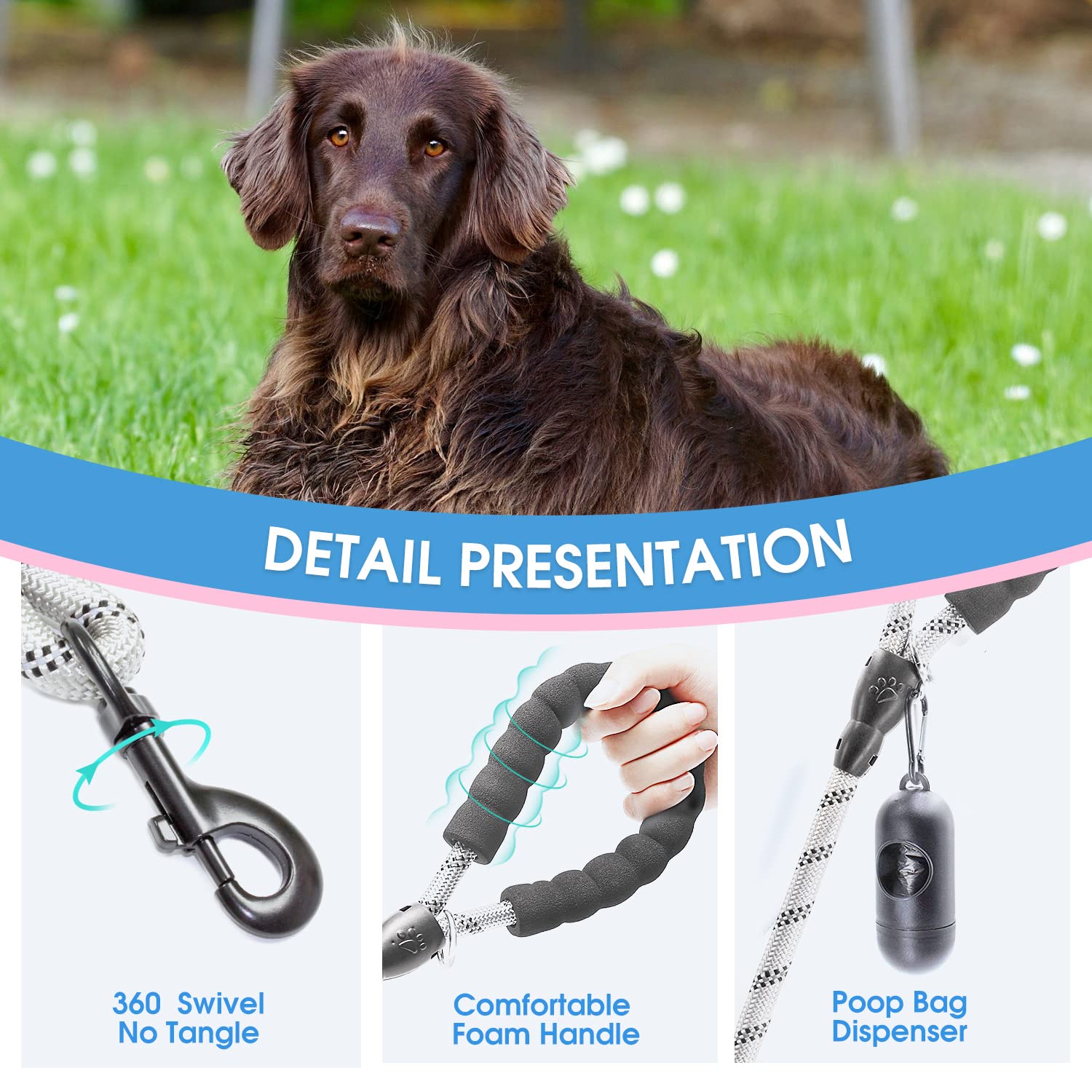 POOP BAGS - 4 feet leash includes one bag dispenser with sturdy metal clasp and poop bags, the dispenser is reusable, you can refill the bags after running out.