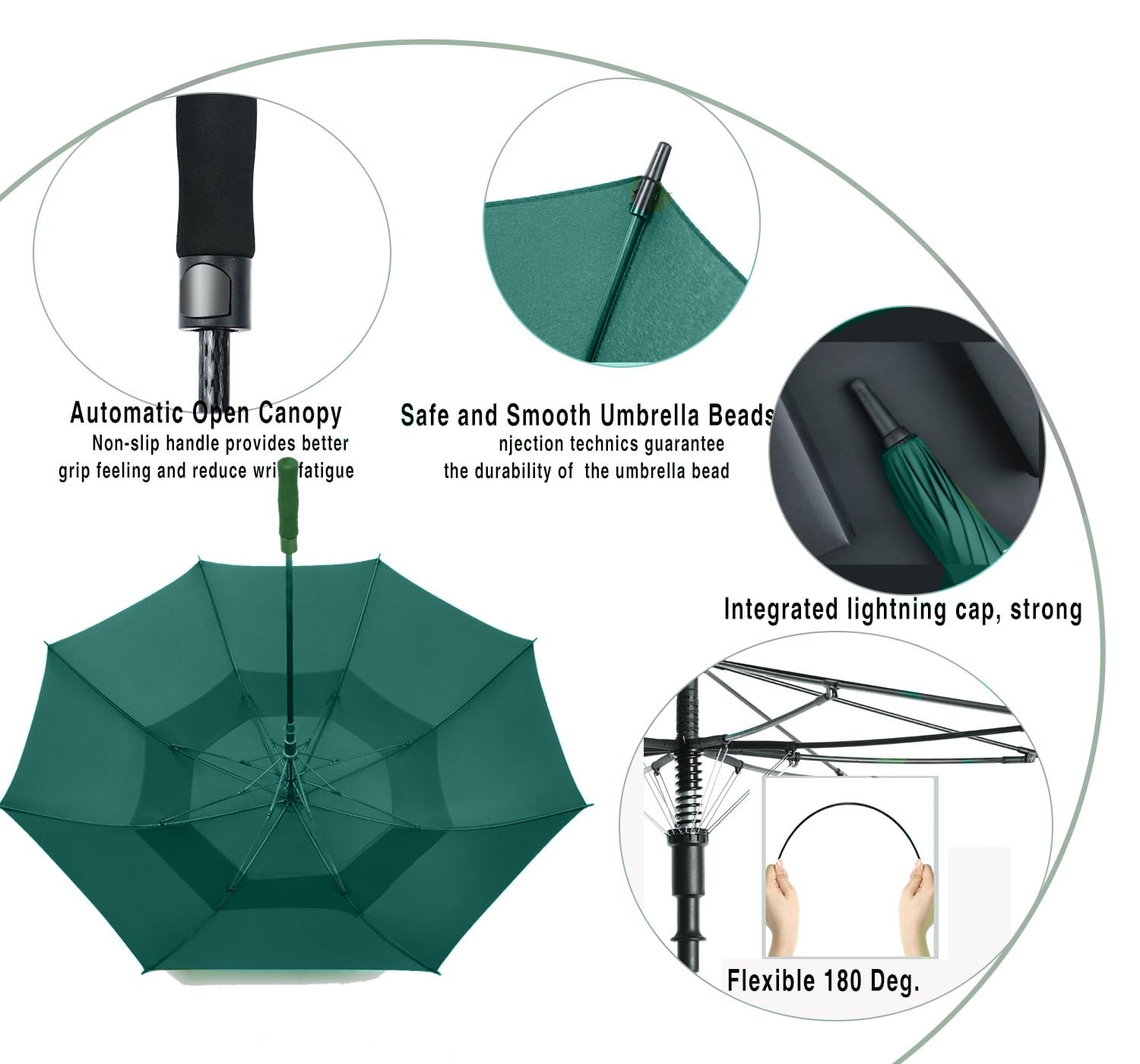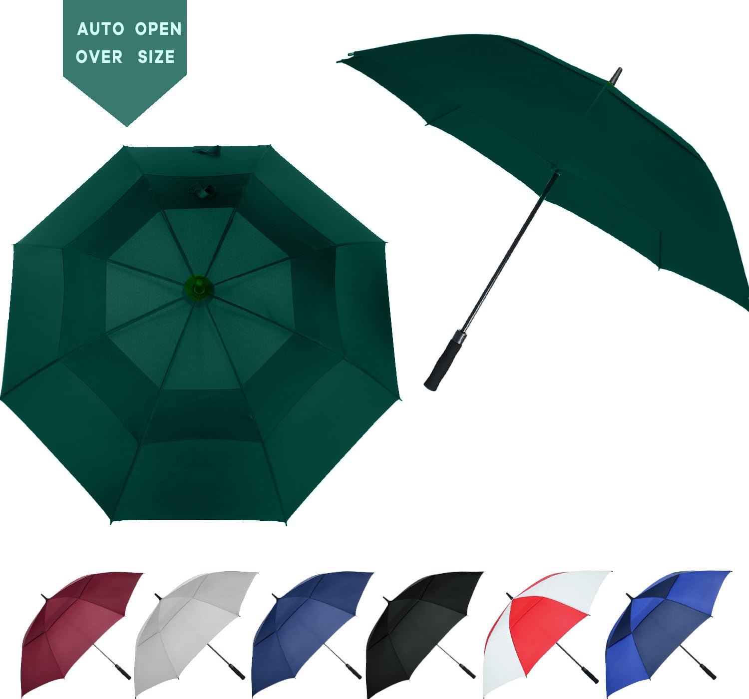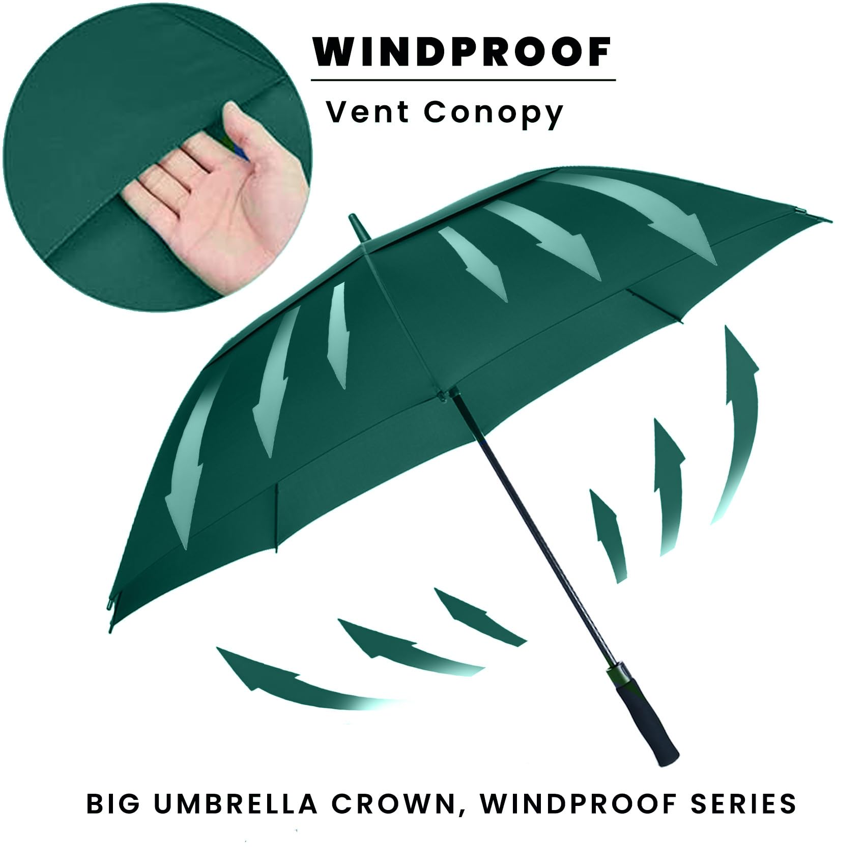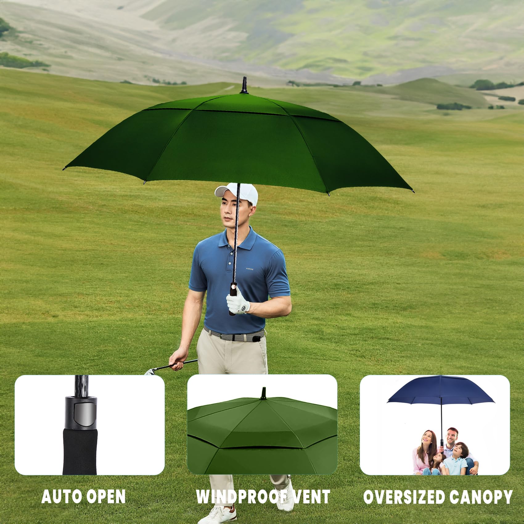 ☂️WINDPROOF GOLF UMBRELLA: The double-canopy design and fiberglass frame will ensure that your umbrella is VIRTUALLY WINDPROOF. Wind will simply not break it. The double-canopy design creates a vent during where wind can pass through, making the umbrella much easier to handle in harsh conditions.