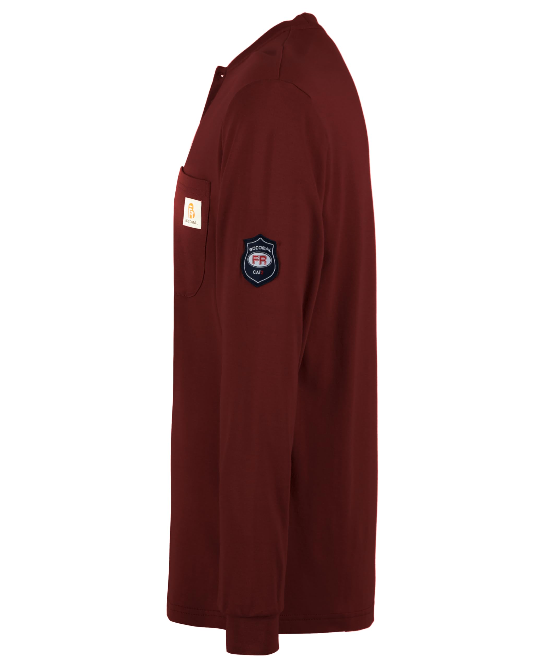 FR MATRIALS:5.5OZ Cotton Knit FR Treated,FR Buttons,FR Sewing Threads!Clear FR Tag on arms and bottom front.More FR info On Neck Tag About UL Certification.We Attached A Small Sample Inside Package For Cunstomers Simple FR Try