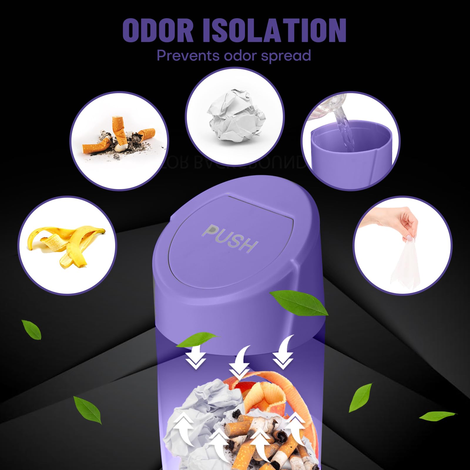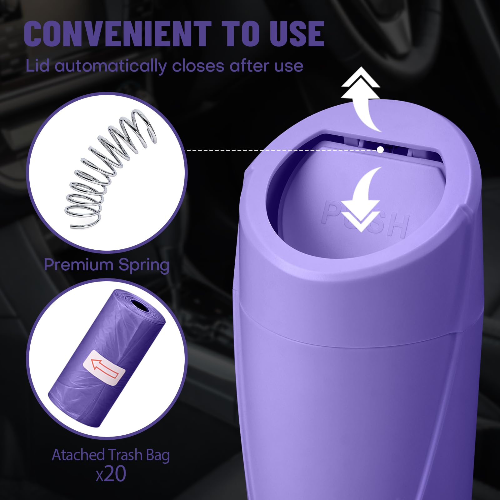 【Convenient and Practical】 The Car Garbage Can is designed with a flip lid, allowing you to easily open it with a light push to dispose of trash or items. The lid closes automatically, effectively blocking odors and keeping your car interior clean and fresh. With 40 disposable trash bags included, it's easy to keep the trash can clean and tidy at all times.