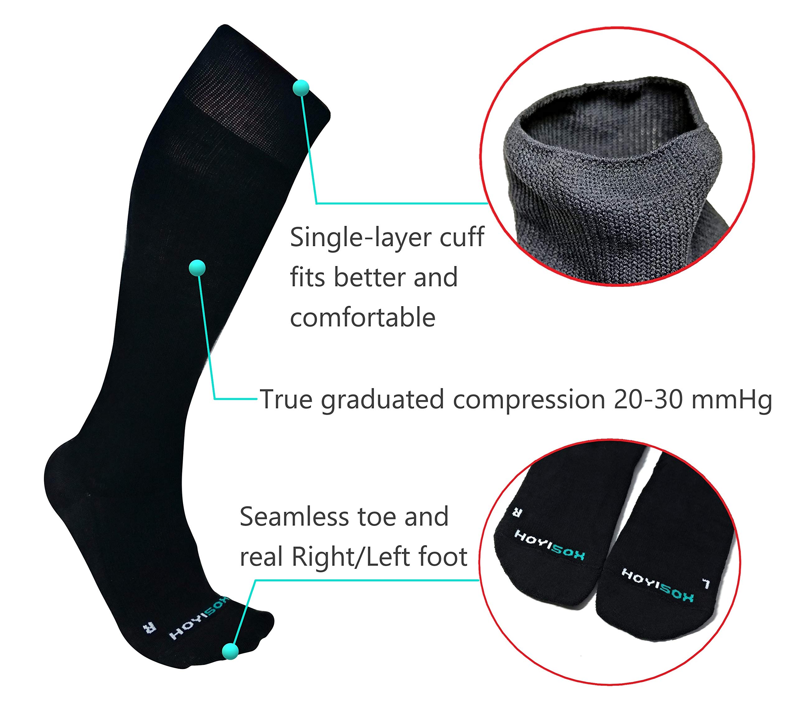 Description Experience comfort and support with our big and tall compression socks, expertly engineered for wide calves and extended wear. Available in plus sizes from Large to 8XL, these socks feature a single-rib welt that ensures a secure fit without pinching at the top—perfect for larger legs. The breathable helical weave delivers firm yet comfortable compression around the calf, making these socks ideal for travel, long shifts, or workouts. An ergonomic L-shaped heel design provides targeted support that conforms to the natural shape of your foot. The 3D seamless toe construction ensures a smooth, irritation-free fit with added room for toe movement, enhancing comfort throughout the day. Reinforced anti-friction zones at the Achilles and heel reduce wear and help prevent blisters during extended use. Whether you're looking for wide calf compression socks for men and women or simply need a more comfortable, supportive fit, these socks are designed to meet the needs of the big and tall community without compromising performance or style.