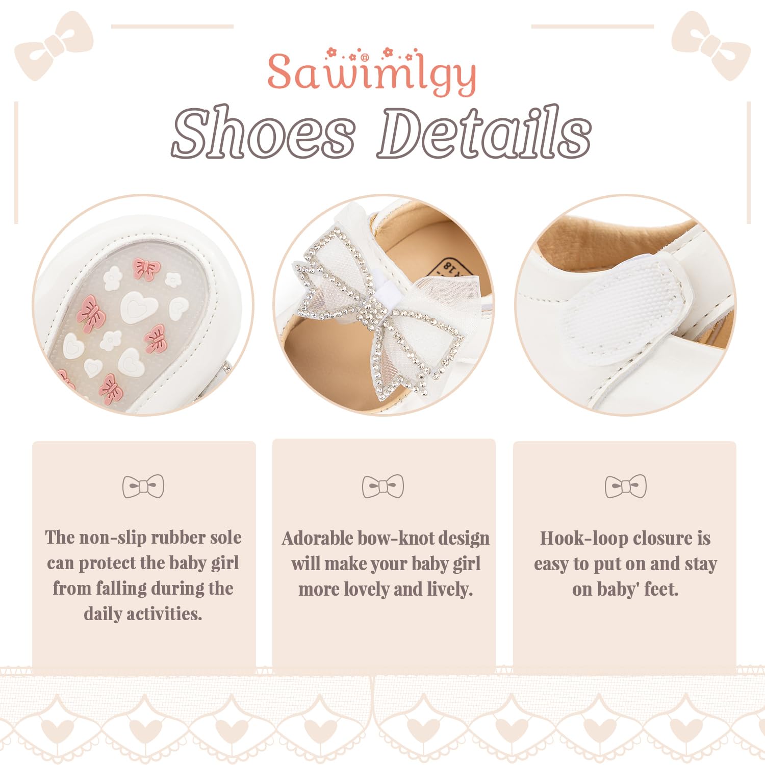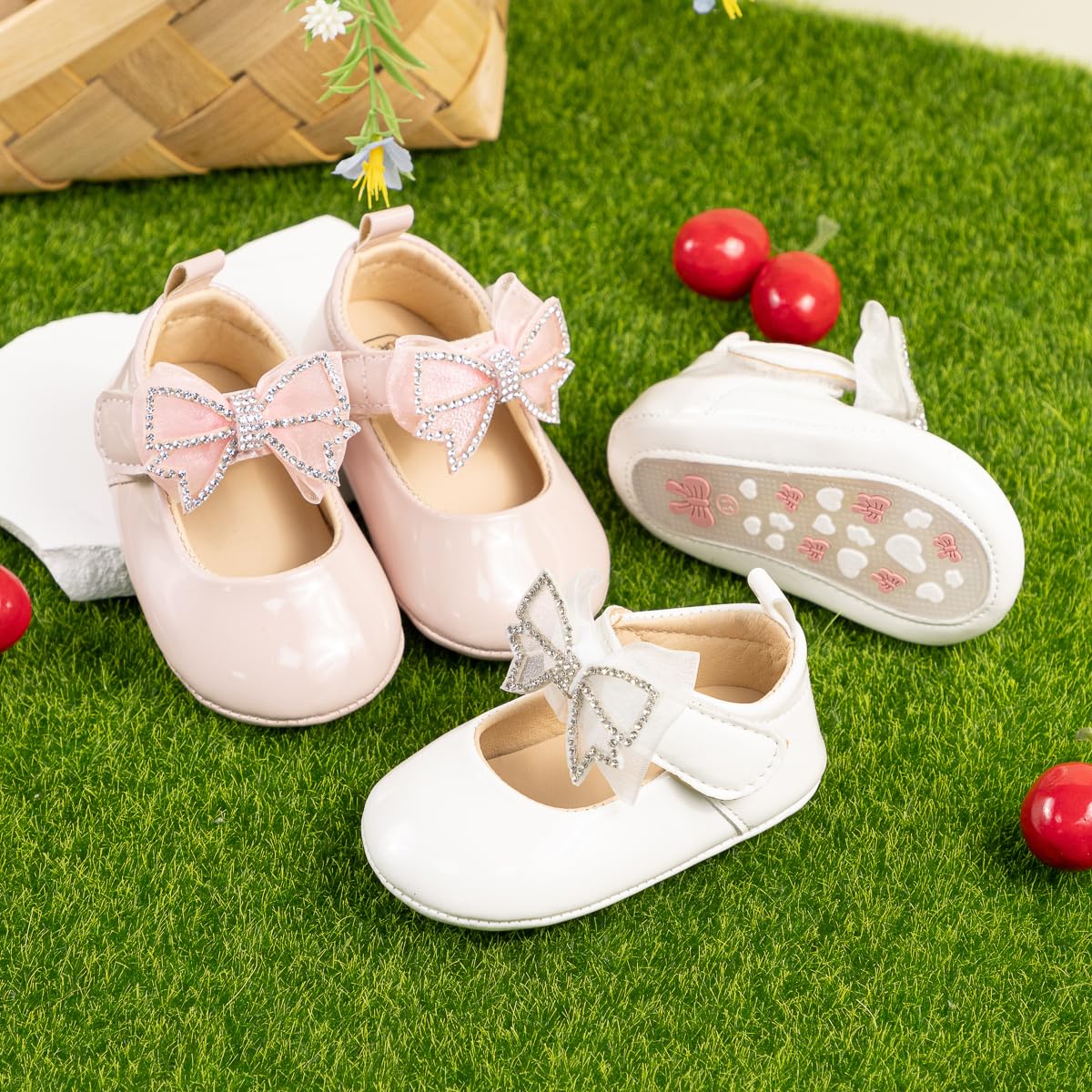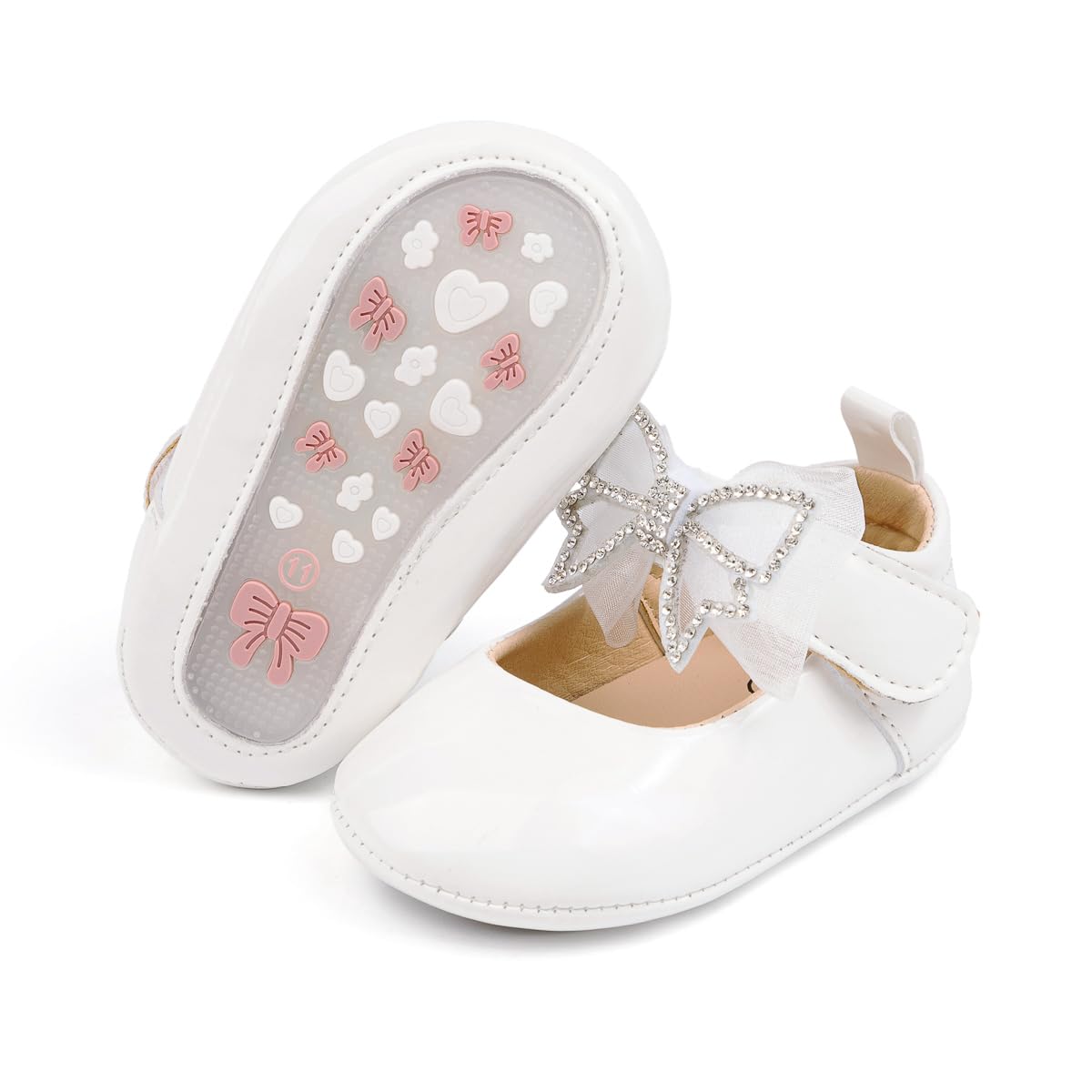Rubber Sole: The soles of baby ballet shoes have lovely bows and raised patterns of love, which play an anti-skid sole and can protect the baby from falling during daily activities. The soft rubber sole is conducive to the baby's feet touching the ground naturally, and is conducive to safe growth and walking