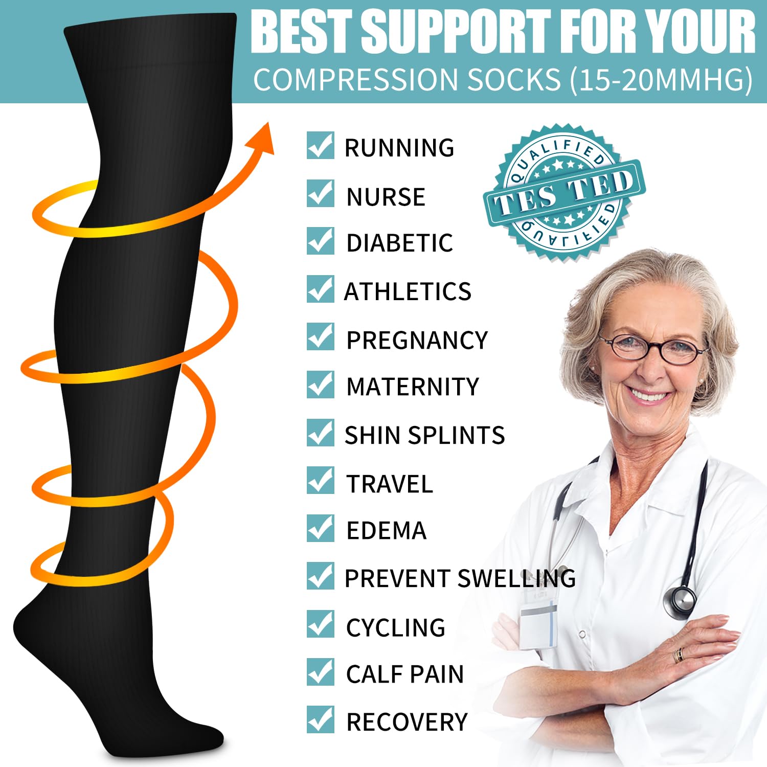IDEAL FOR ALL AGES -Compression socks are used every day by people in all walks of life. From the outdoors or in the gym by runners and athletes to the workplace by people who are on their feet all day. They'll work for you as you work for yourself and your family. We believe wellness is for everyone,and it starts from the ground up. We're here to restlessly support you - to do more and go further in style and comfort.