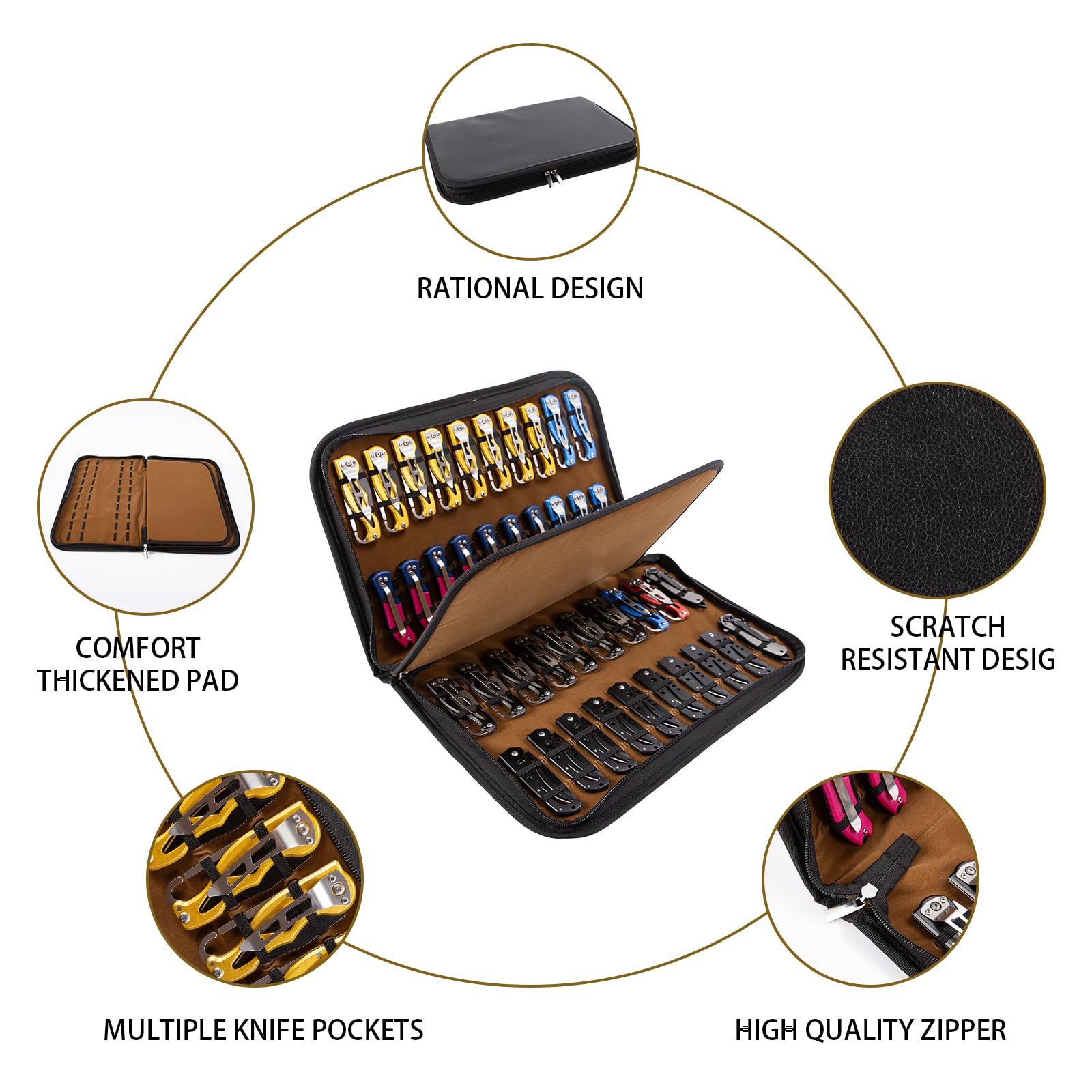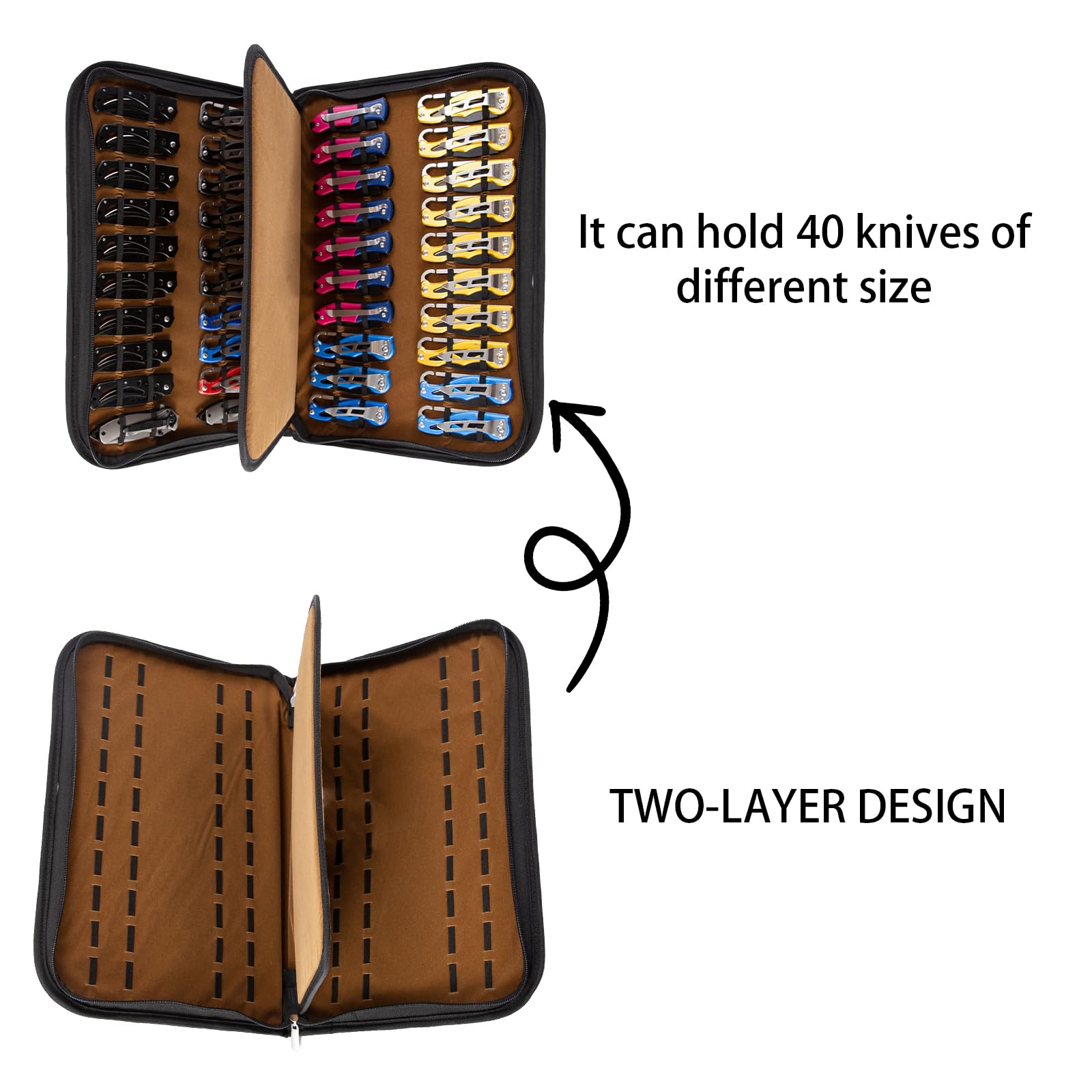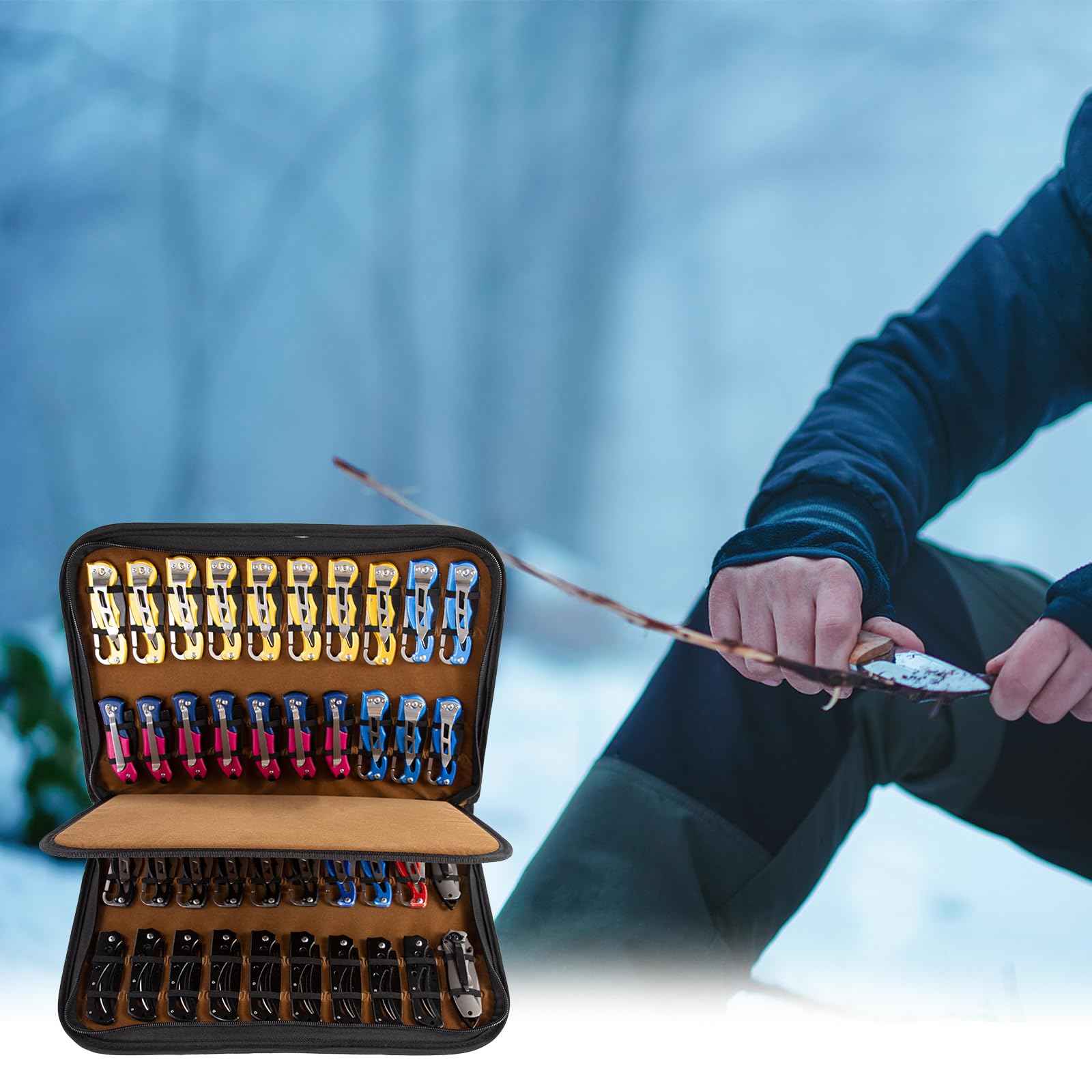 Pocket Knife Storage Case,Folding Knife Pouch Carrier Holder,40 Slots Small Knife Carrying Cases,Versatile Knife Collection For Survival,Tactical,Outdoor,EDC Mini Knife