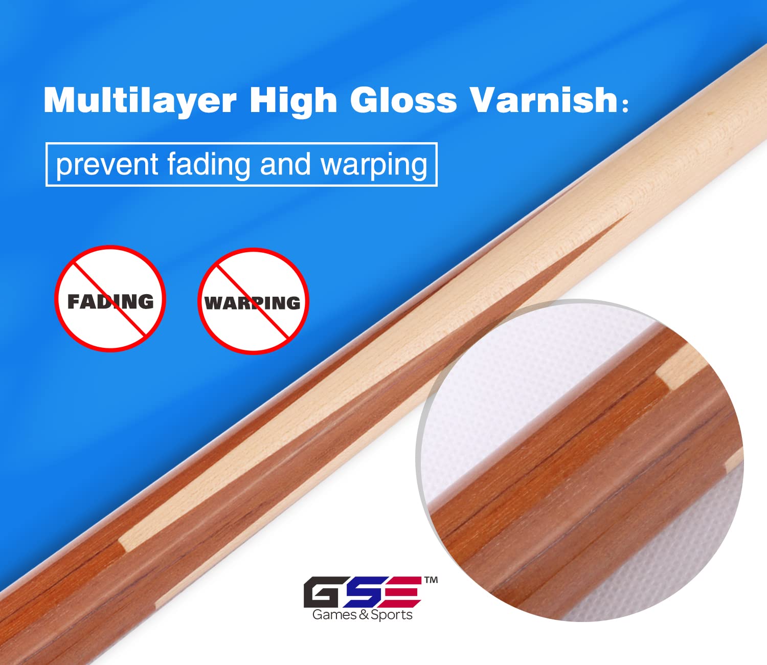 Quality: The billiard cue sticks have 12 layers of high gloss varnish finish to prevent fading and warping