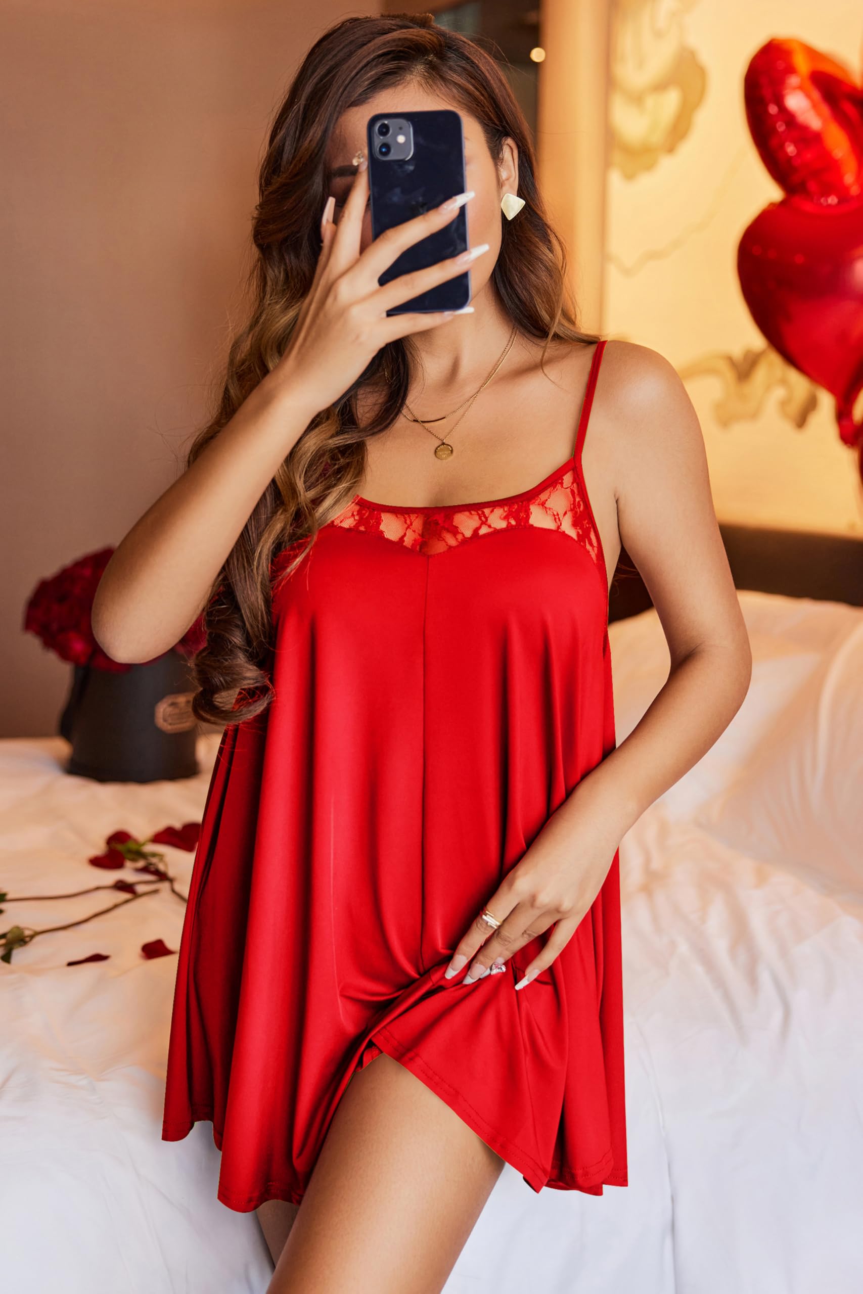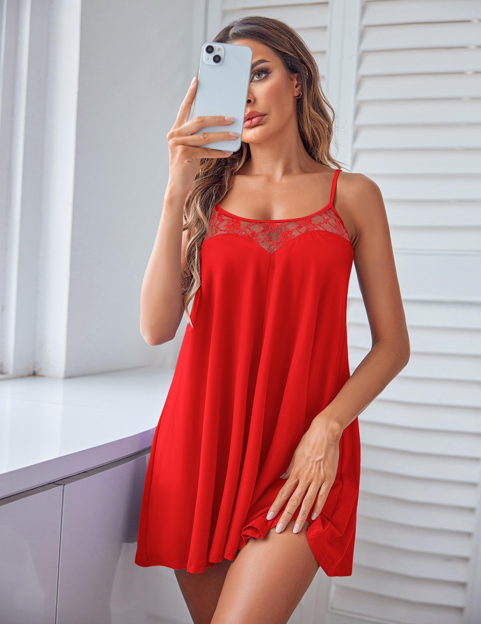 IDEAL FESTIVAL GIFT: Spaghetti strap nightgown, sexy sleepwear for women, chemise nightgowns for women. Perfect Gift Choice for Your Girlfriend, Wife, Mother, Sisters, or Friends on Valentine's Day, Bridal Party, Honeymoon Vacation, Birthday, Christmas Day, New Year, or other Festivals.