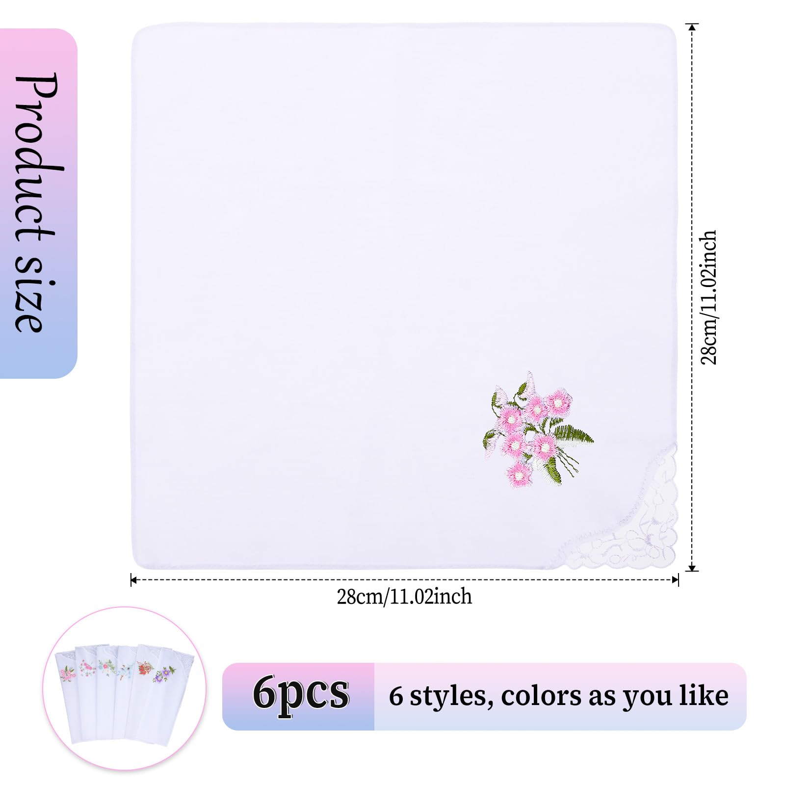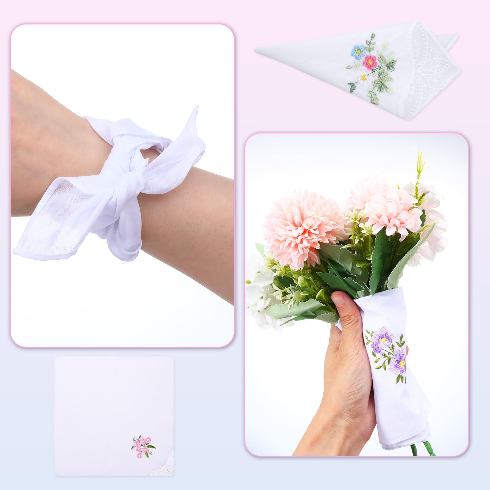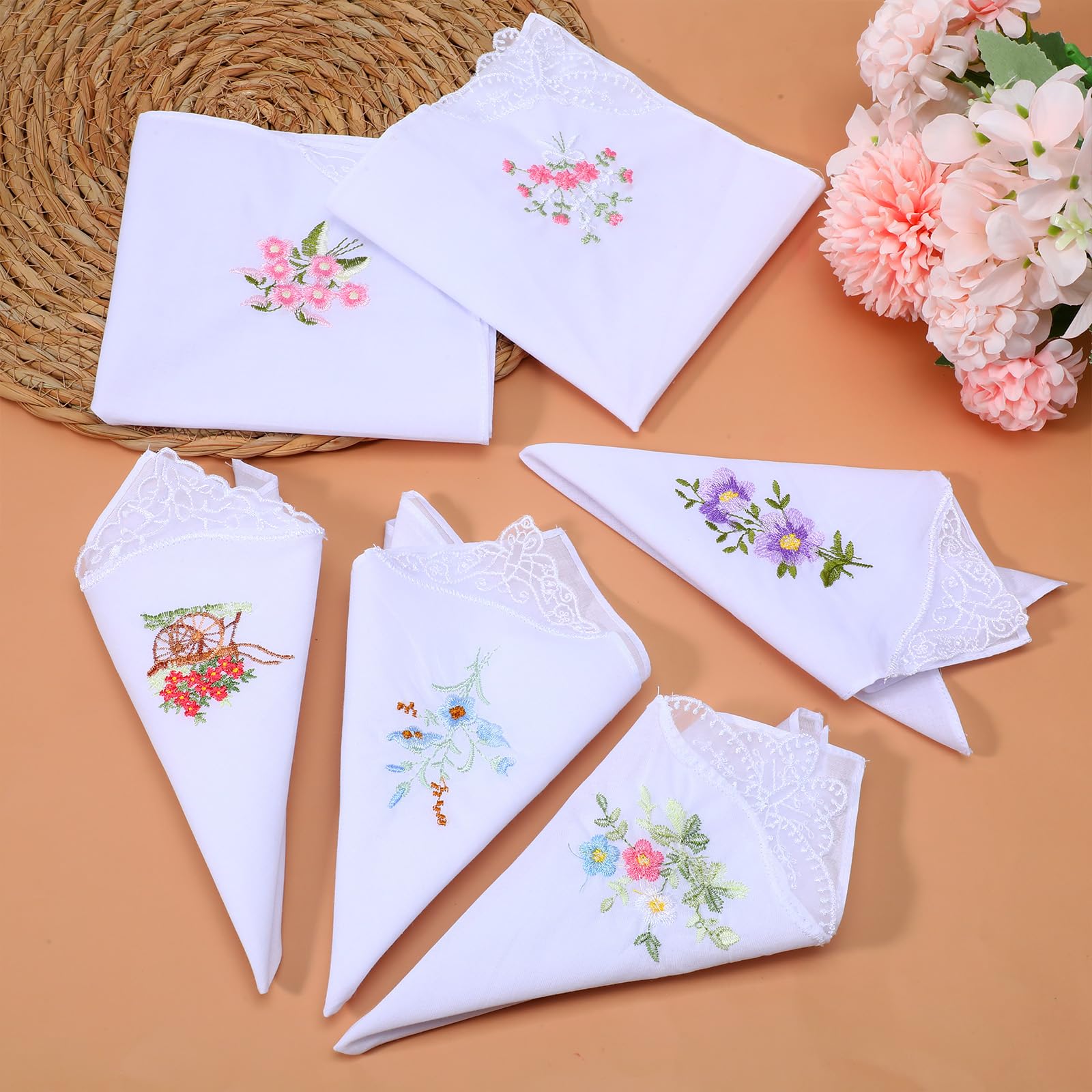 You will get: 6pcswomen's handkerchiefs, white lace flower embroidery design, retro and elegant, suitable for daily carry-on use, or as a bride for marriage and engagement. The quantity is sufficient, exquisite and beautiful, you can use it as a fashion accessory, whether you use soft cotton women's handkerchief headscarf decoration, or give it to family and friends, it is a memorable gift