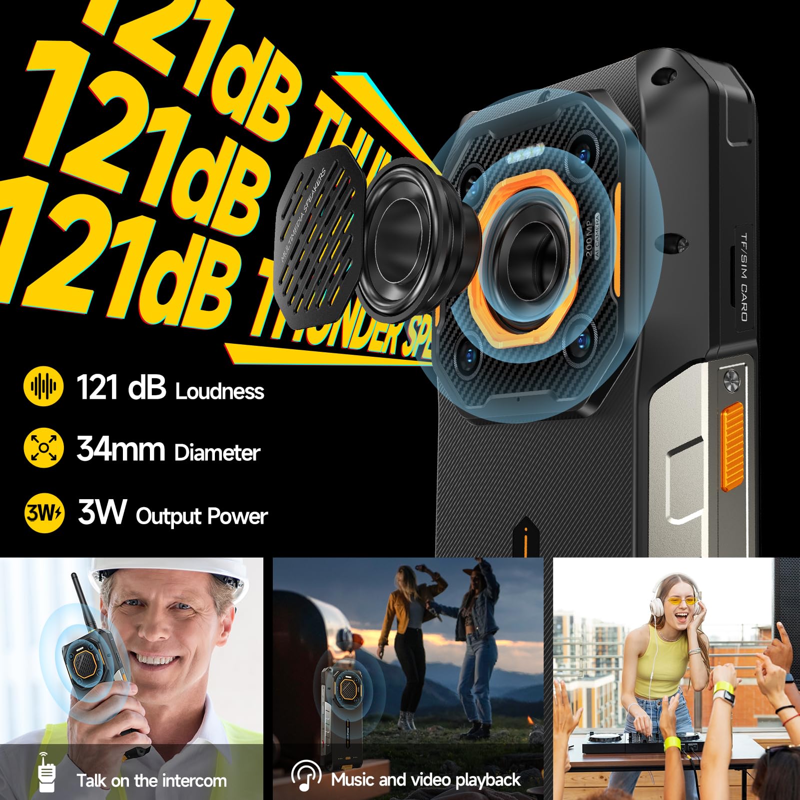 【121dB Thunder Speaker】 With a 3-watt output power and a loudness of 121 dB, the speaker in 34mm diameter delivers an exceptionally powerful and crisp dynamic audio performance.