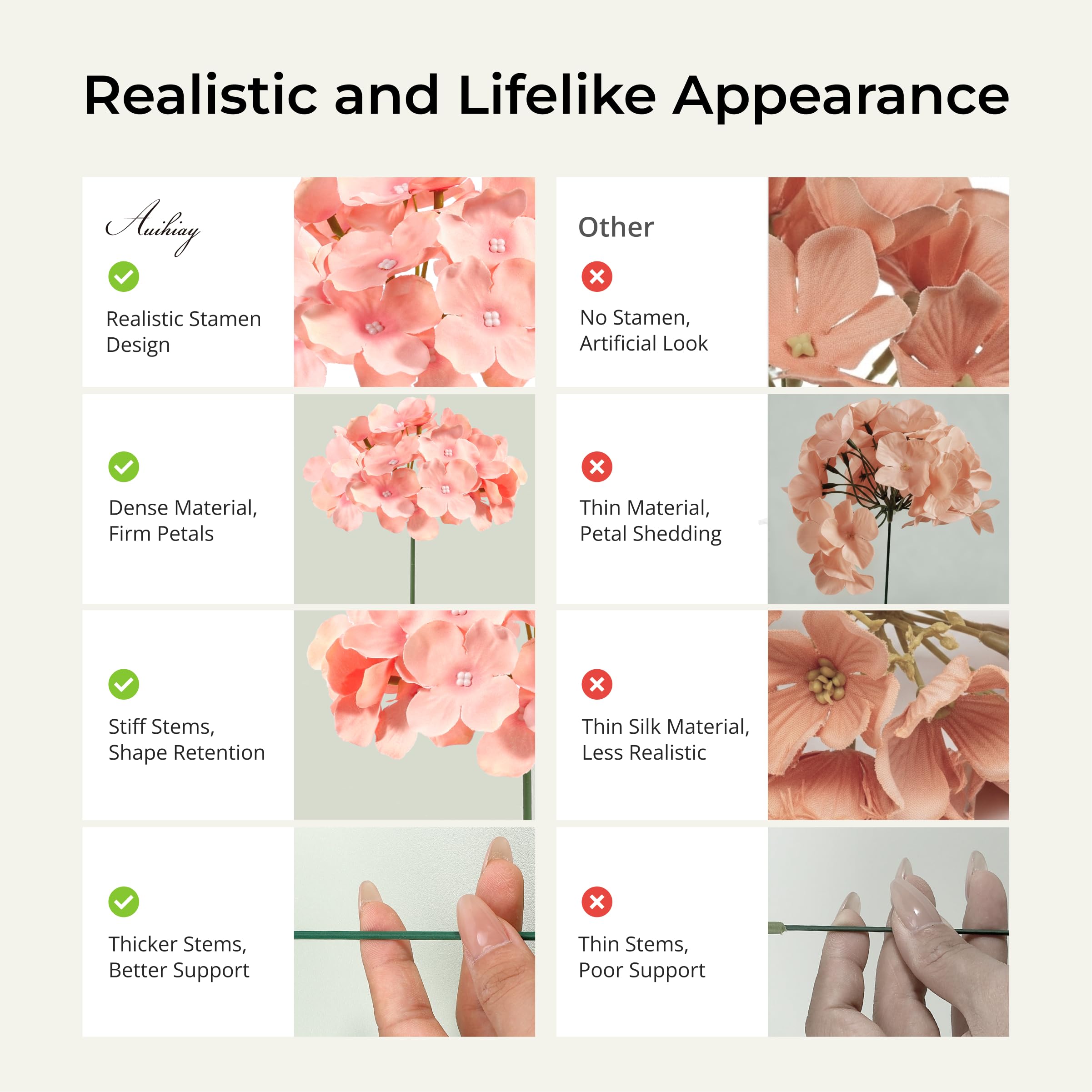 Easy to Arrange: Beautiful hydrangea flowers can be matched anytime and anywhere, meet the needs of different occasions and uses - you can bundle many flowers together to get a lush look or use them with artificial flowers in other shapes and colors to design beautiful flower arrangements