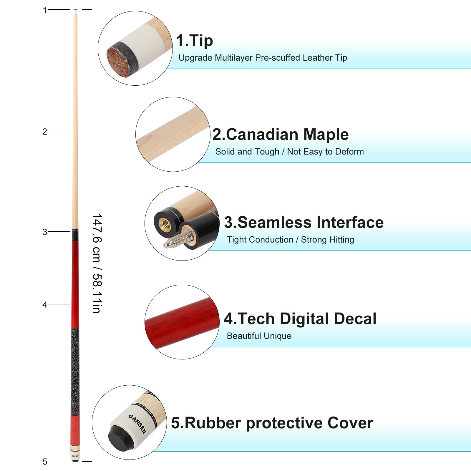 MATERIALS: Selected top-tier Canadian Grade 6A Maple, known for its unparalleled strength and durability, provides solid support for every shot you take
