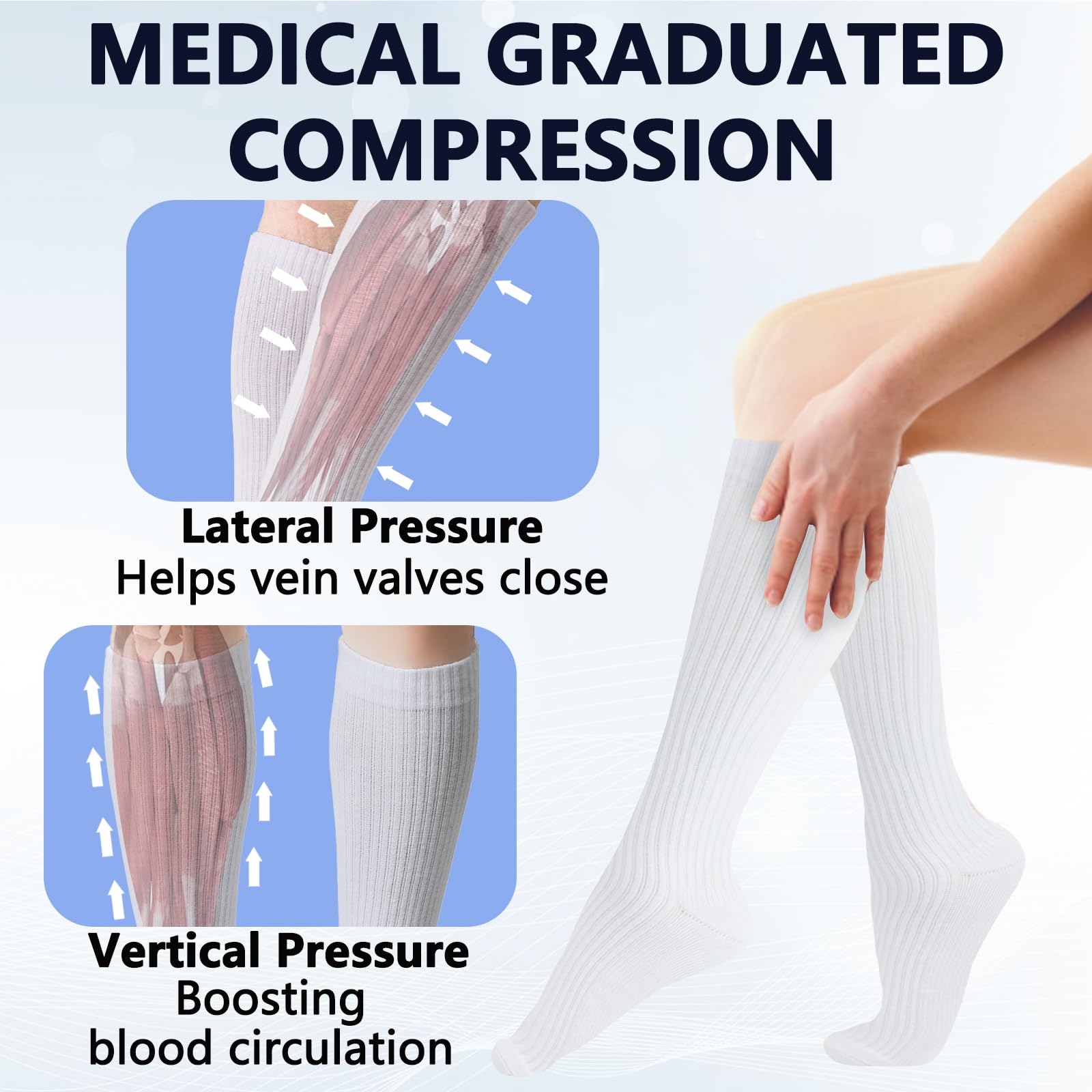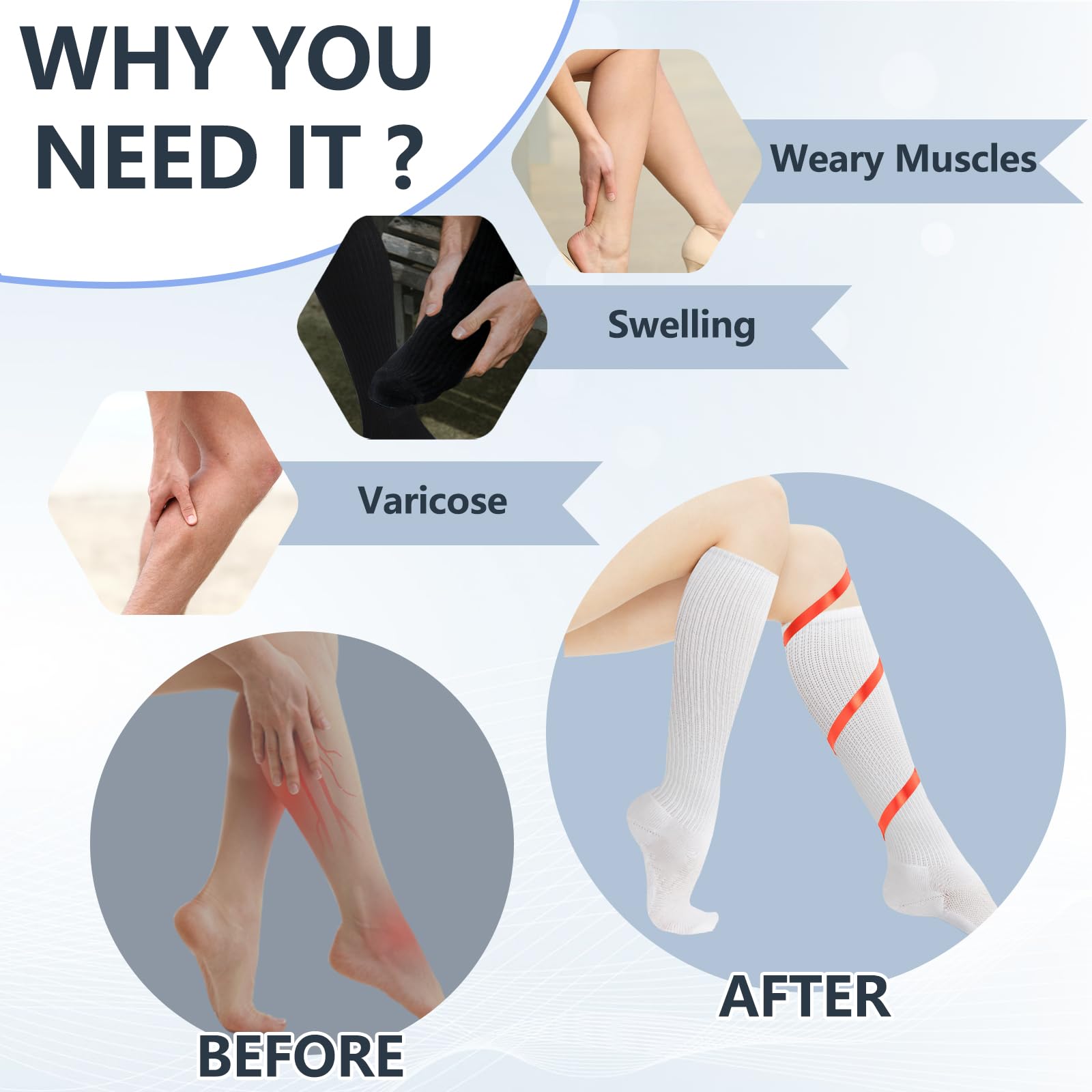 1. Graduated and Gradient Compression: 15-20mmHg provides support to reduce fatigue when standing, sitting, flying, or traveling