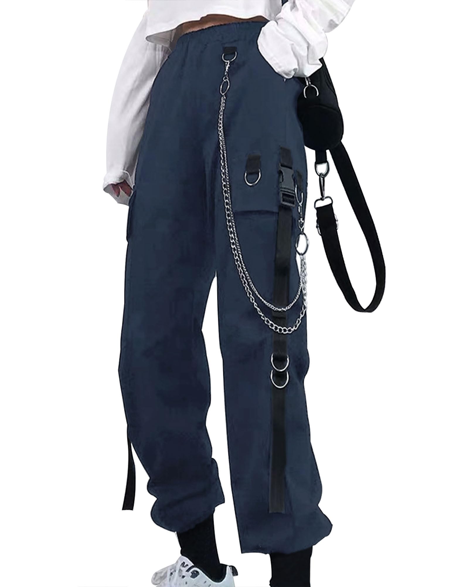 [PLEASE NOTE] Please refer to our size chart picture to confirm the appropriate size before purchasing — size up for an oversized look. This item includes only one pair of pants and one chain. It does not include a bag.
