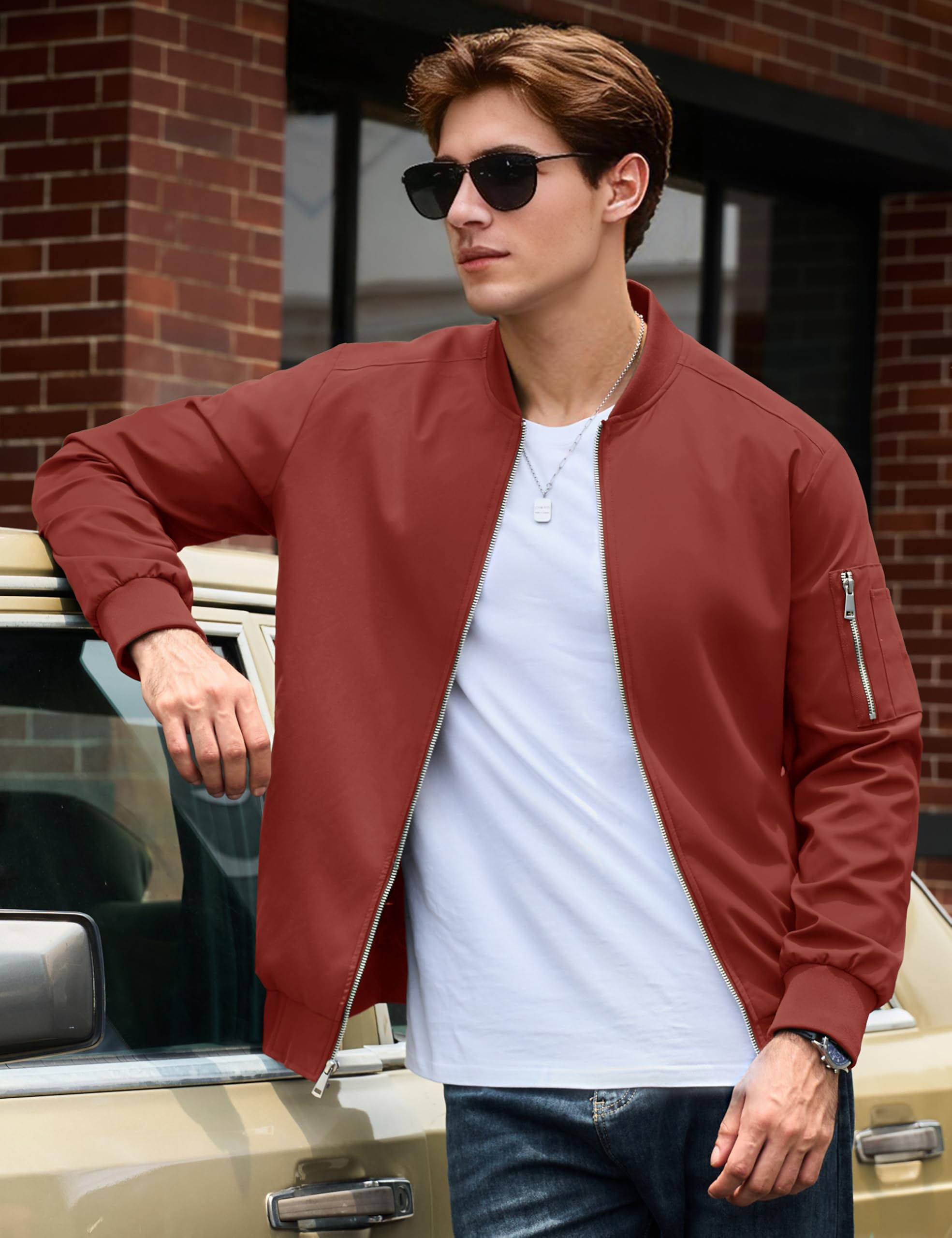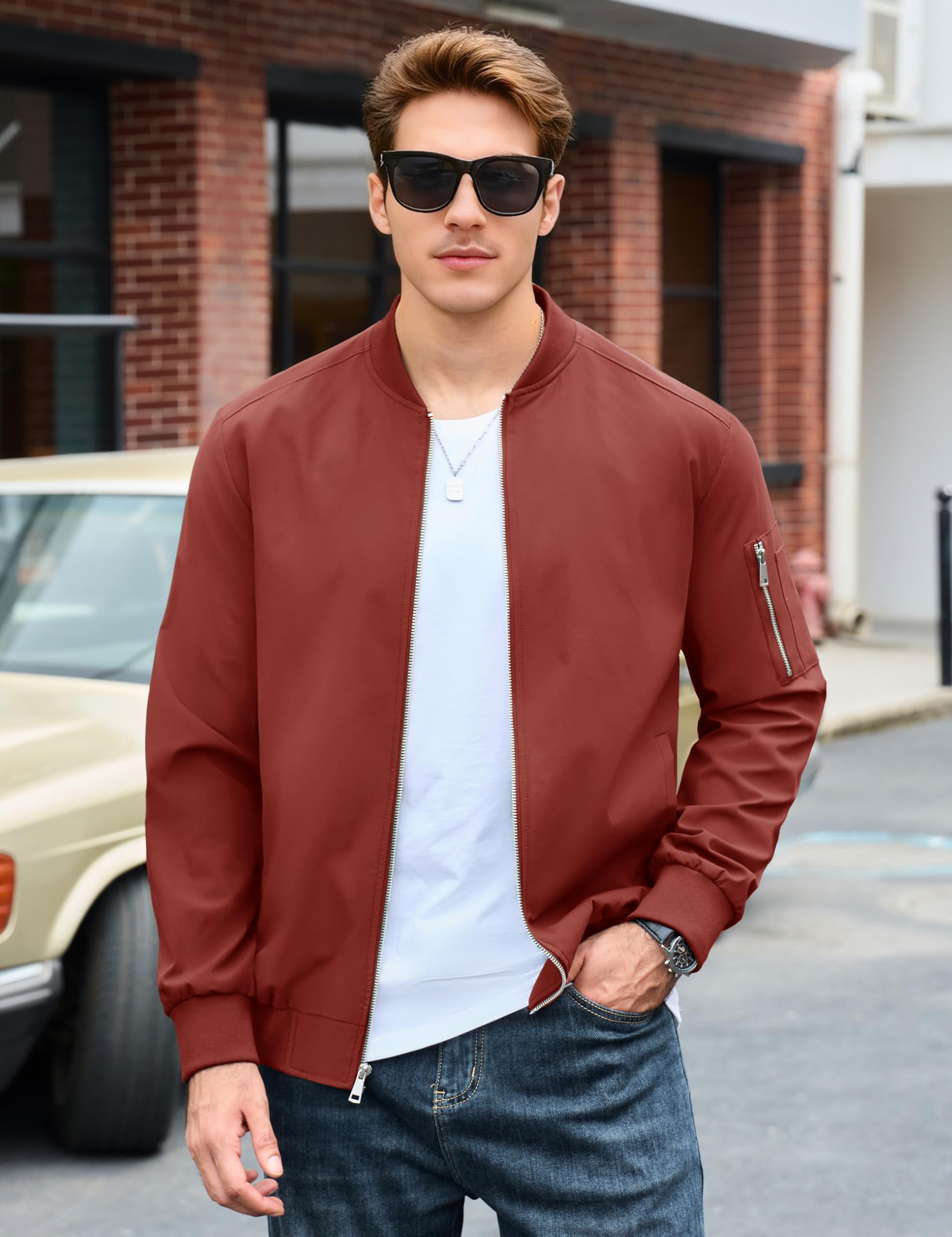 Thin Bomber Jacket:Thicker than windbreaker material,comfortable and fashion