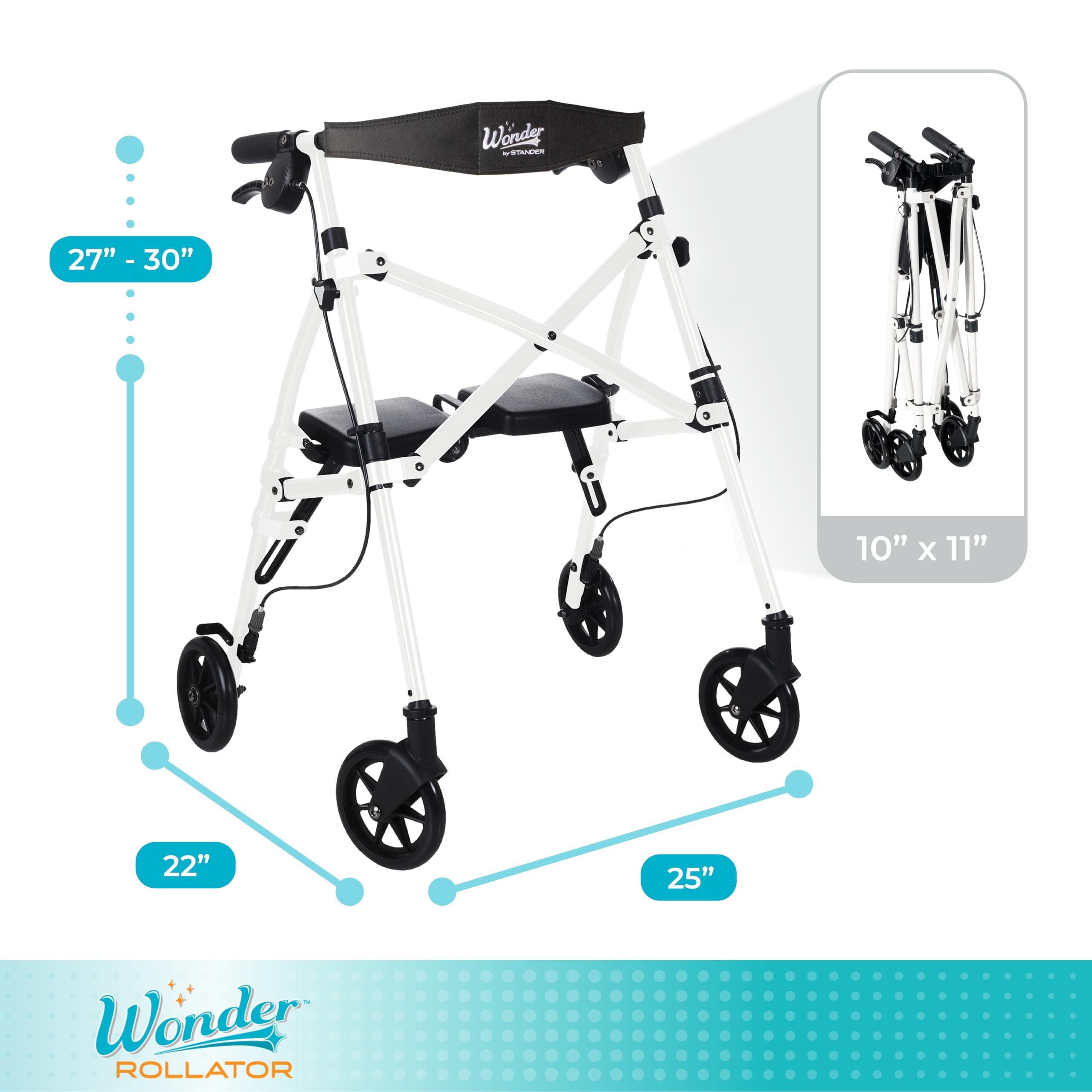 Compact Folding Rollator: The Space Saver Rollator is the world's most compact folding rollator; the patented EZ Fold-N-Go technology folds it 3 times smaller than the average rollator into a 10 x 11 inch footprint to save space while on the go