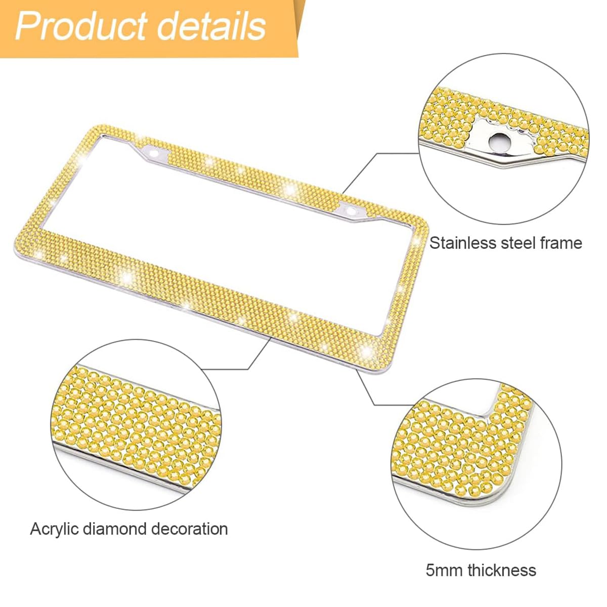 Premium Quality: Our license plate frame is made of stainless steel and fully covered with gorgeous handcrafted crystal, sturdy and lightweight. The edge of license plate frame has been covered to prevent scratching paint.
