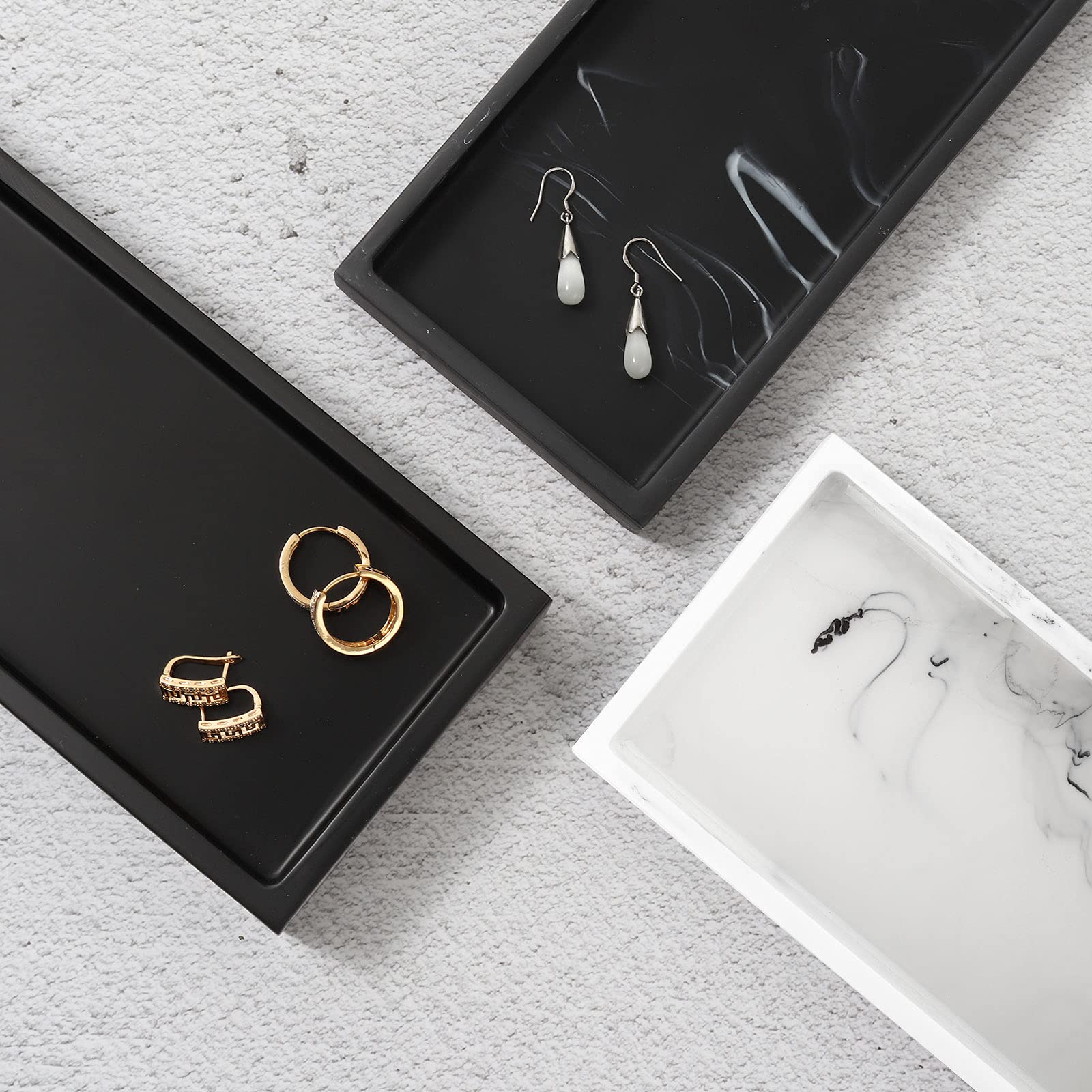【Multi-Purpose Use】: Luxspire small tray keeps the countertop neat and organized. You can place the black tray anywhere. Our marble looking tray is perfect as an over toilet tank tray, soap dispenser tray, napkin holder, kitchen soap tray and jewelry tray.