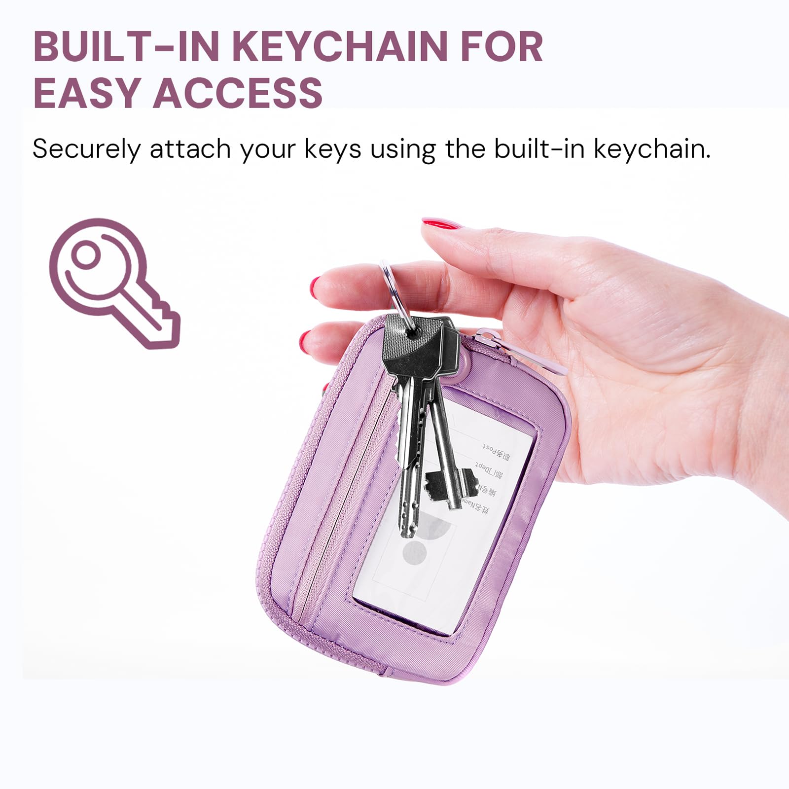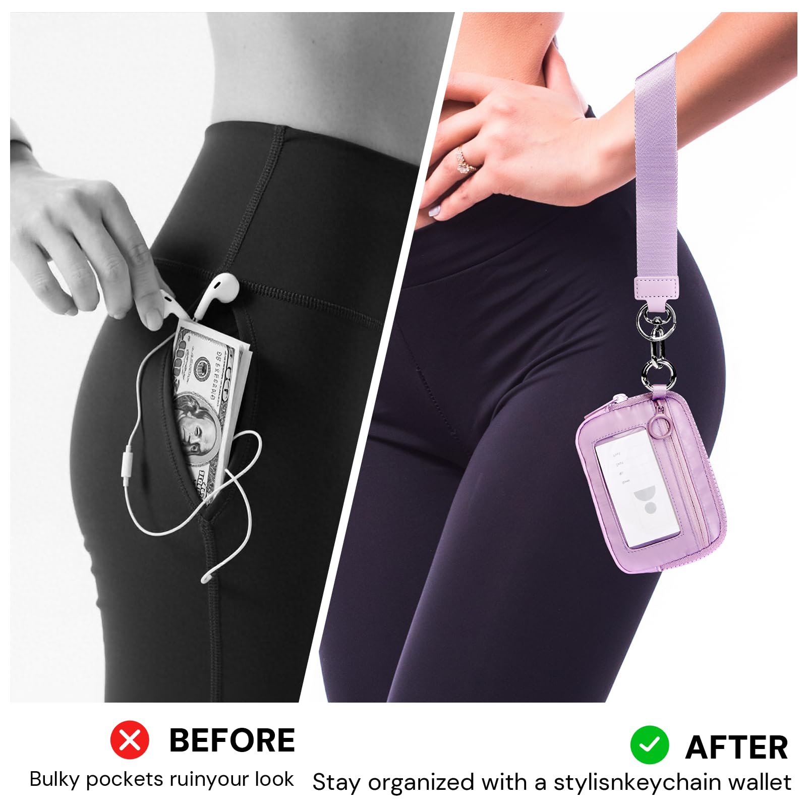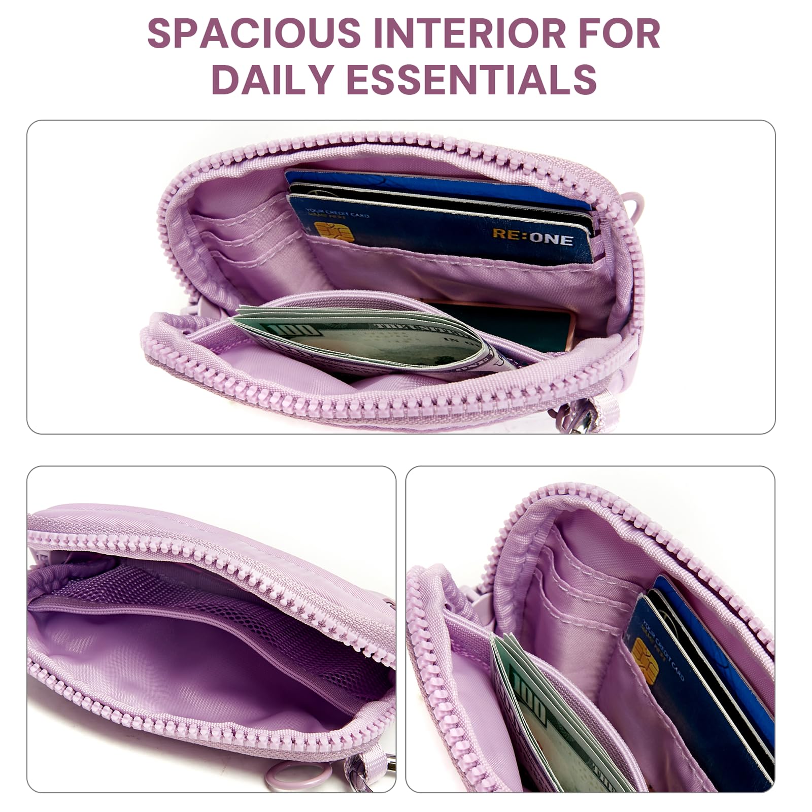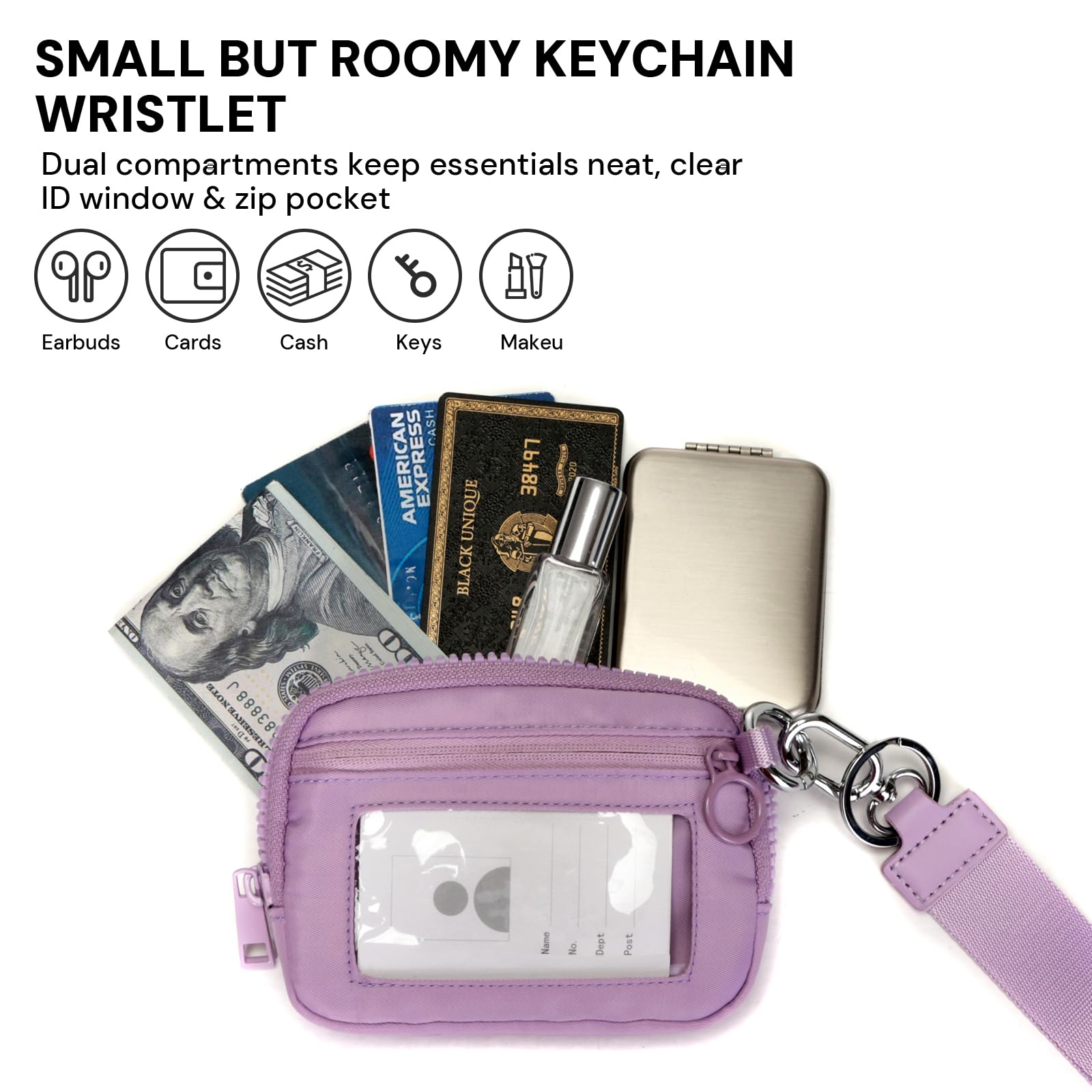 Premium Material:This light purple keychain wallet is crafted from high-quality nylon that’s soft, water-repellent, and skin-friendly. The zipper runs smoothly, the stitching is neat and secure, and the wristlet keychain fits comfortably in your hand—adding a refined touch to your daily carry