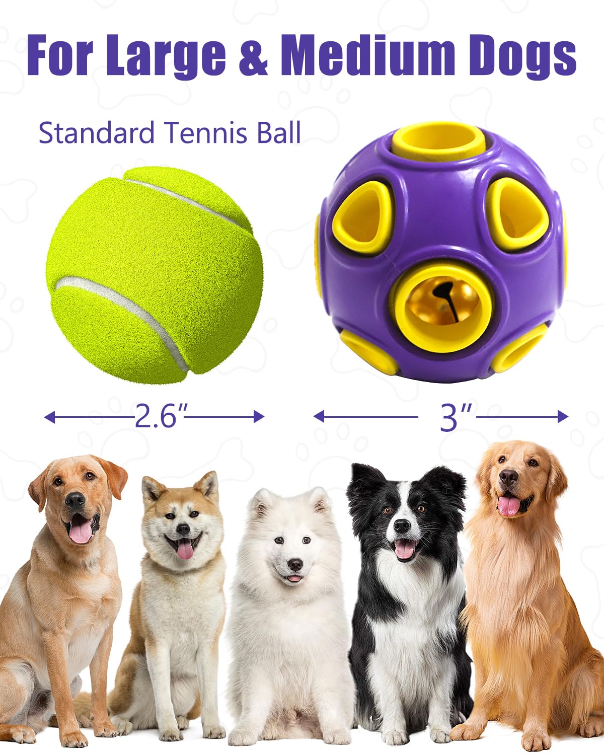 Suitable for Different Dog Sizes: Our doggy toy ball set comes in two sizes to meet the needs of various dog breeds. The small sized balls, with a diameter of 2 inches, are suitable for small dogs and puppies. The large sized balls, with a diameter of 3 inches, are perfect for medium and large dogs.