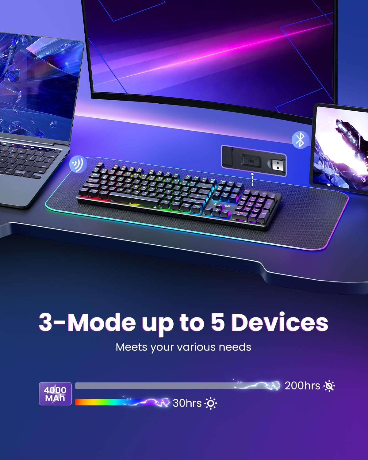 【3-Mode Connection】Geared with Redragon innovative tri-mode connection technology, USB-C wired, BT 3.0/5.0 & 2.4Ghz wireless modes with up to 5 devices, which make your workflow upgrade with the physical switch on the back.