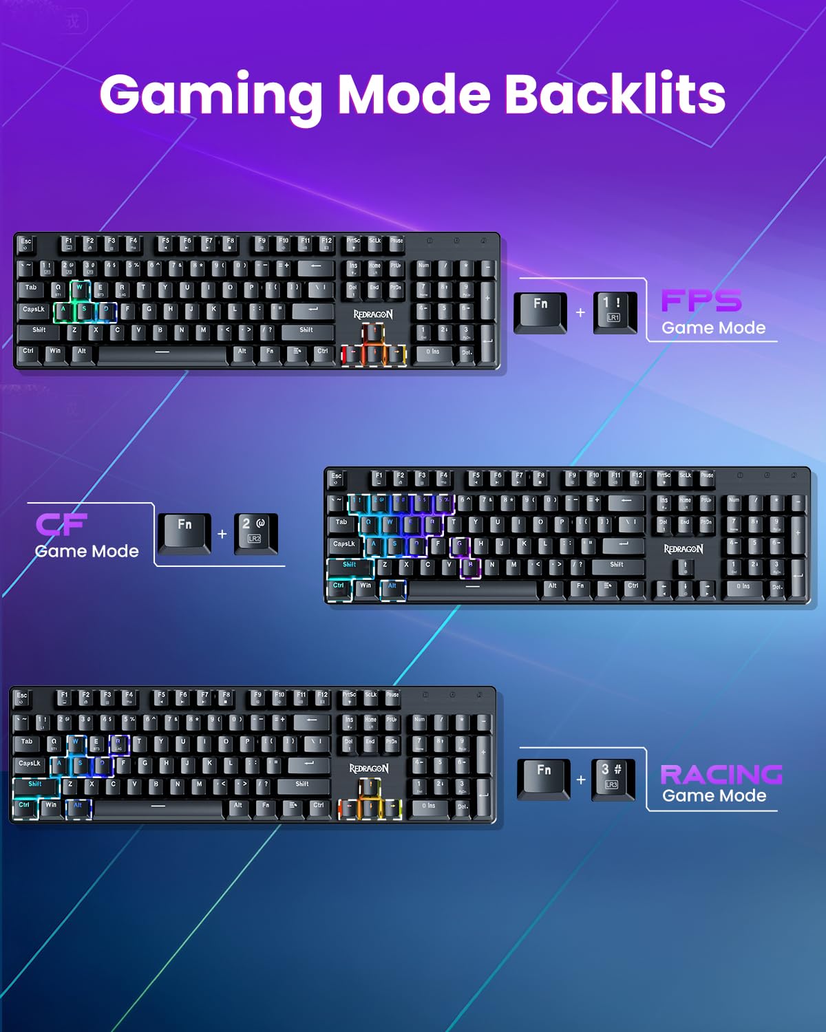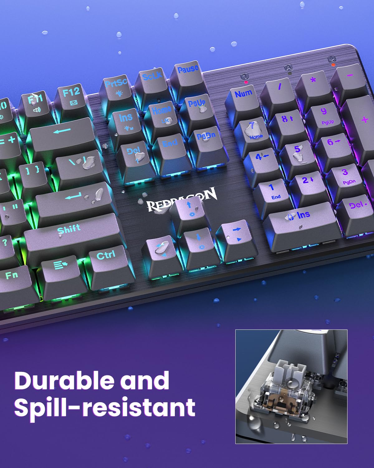 【Stylish & Durable】This wireless keyboard adopts a metal panel design, which increases fashion and keyboard texture. The keys have been tested 500,000 times to ensure the durability of the product. The Redragon keyboard will be your loyal partner for games and office.