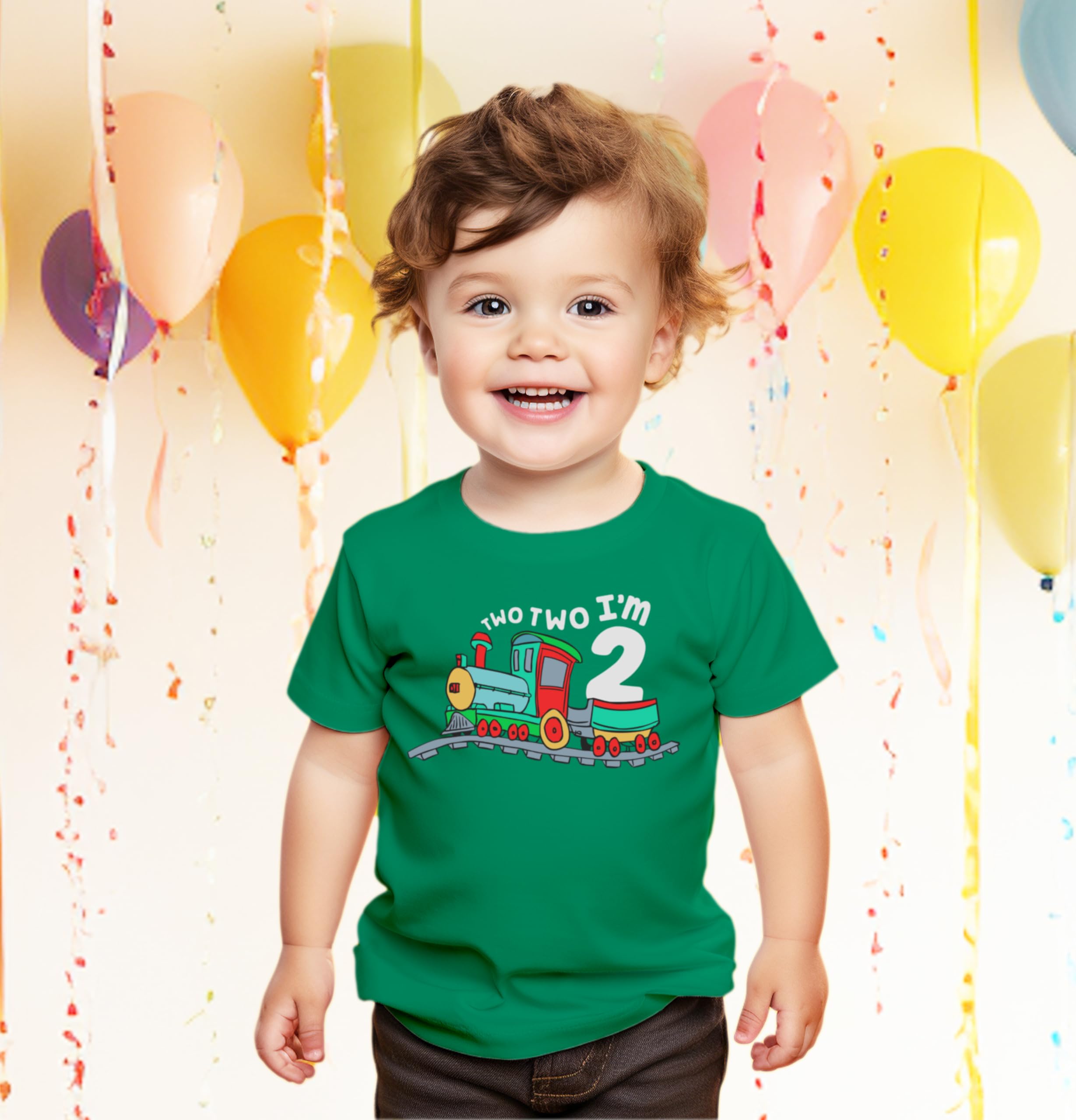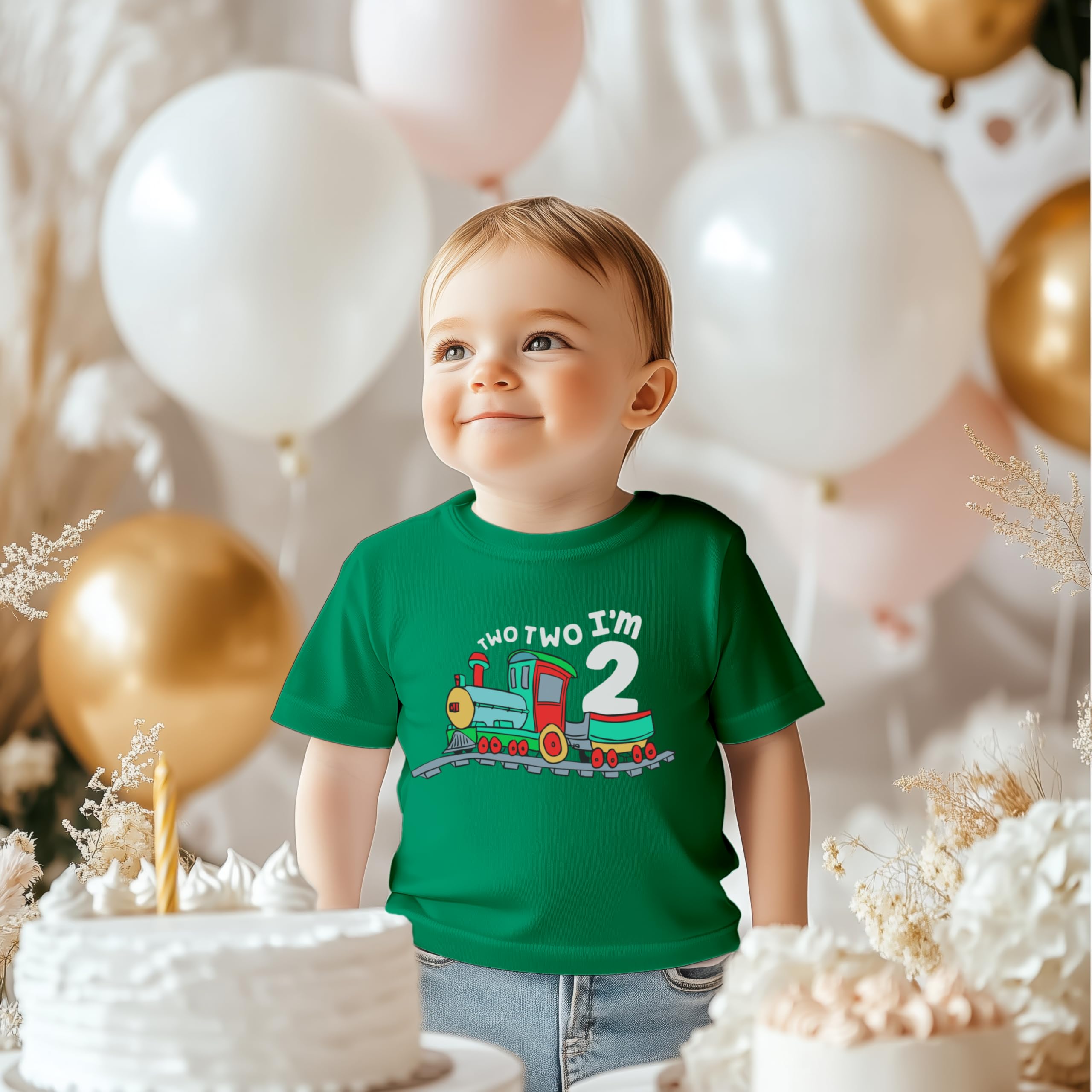 The two two train 2nd birthday outfit in Green is made from 100 Percent Cotton material. All our products are machine washable. The material is soft and washes really well.