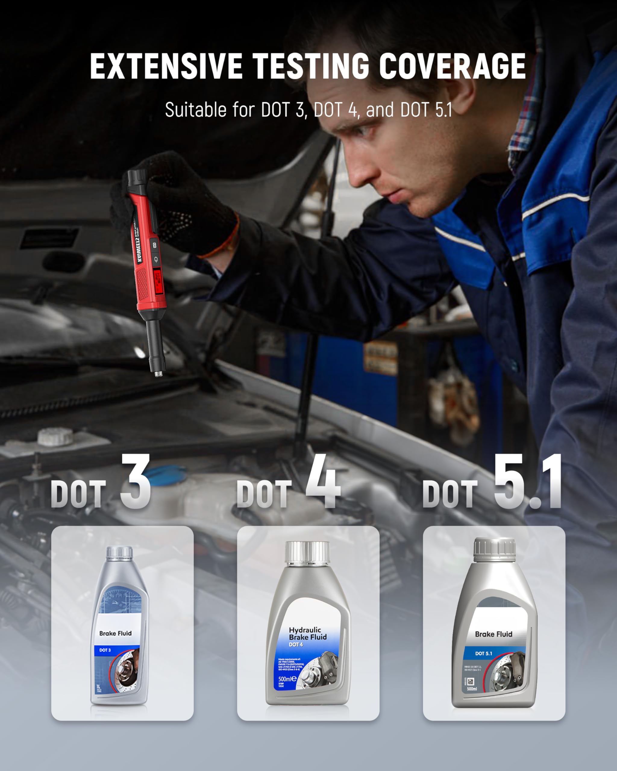 Fast and Accurate Measurements : This brake system sensor ensures quick and precise readings with an accuracy of ± 0.3%, covering a range of 0% - 4%. Whether you're checking DOT3, DOT4, or DOT5.1 fluids, this device offers reliable results, helping you easily maintain optimal brake performance