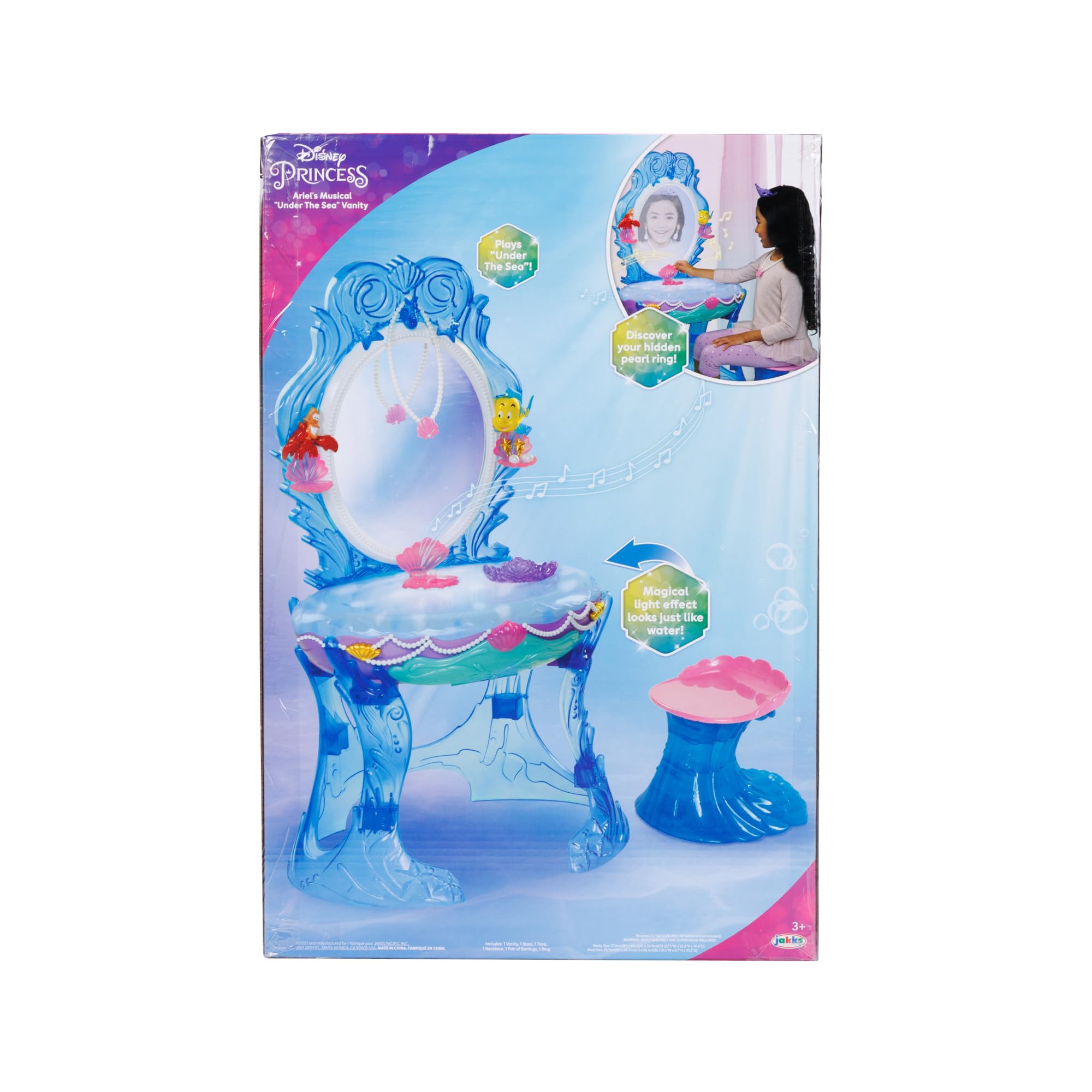 MUSIC, LIGHTS, & SOUNDS: This musical vanity includes a “magical” light up effect that looks just like water and plays “Under the Sea” from Disney’s The Little Mermaid!