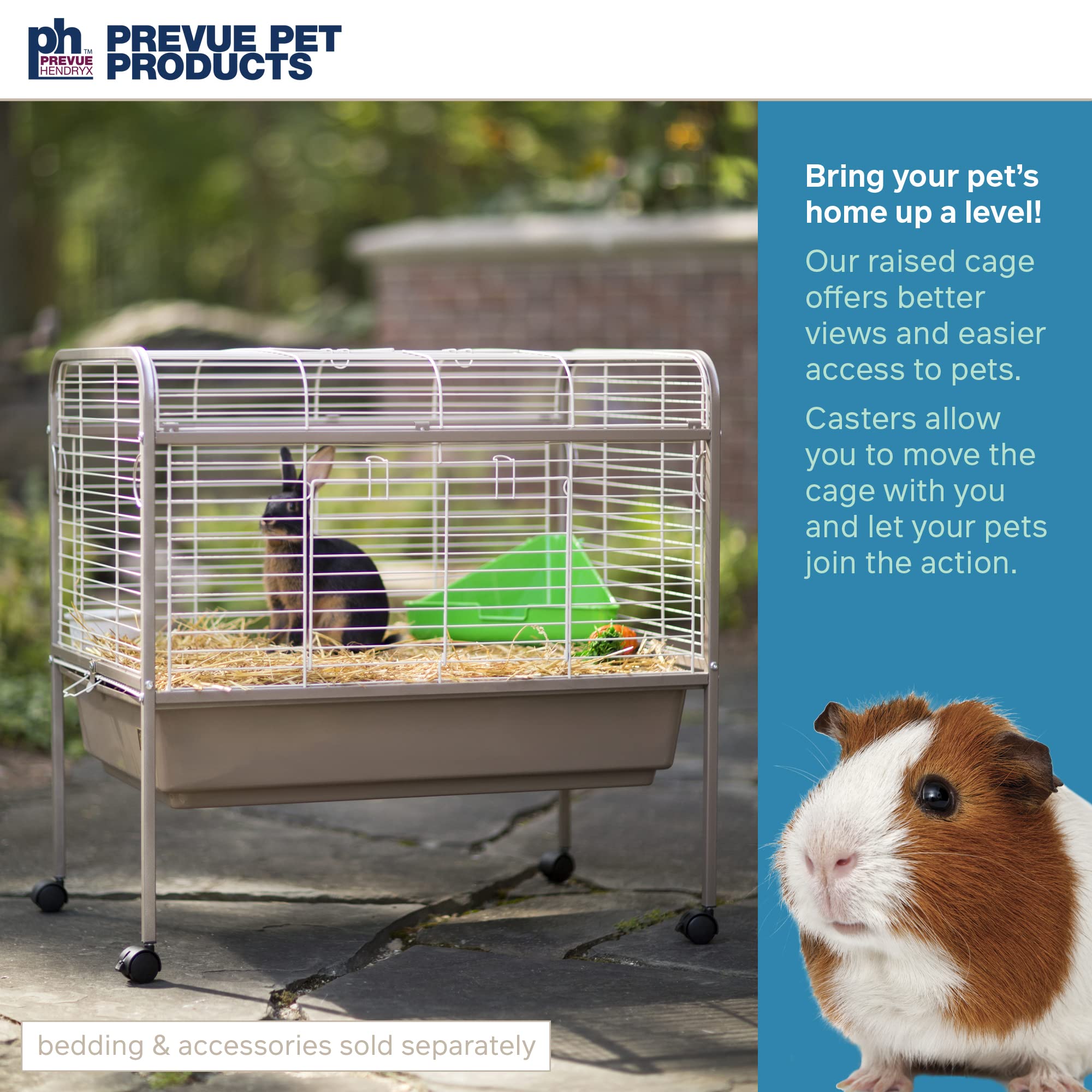 Prevue Pet Products Small Animal Cage with Stand is ideal for a variety of small animals including rabbits and guinea pigs. Two large doors, one on the top and one on the side, allow you to easily access your precious pet. Tubular steel stand sits on casters so cage can easily be moved from room to room or even from indoors to outdoors. Non-toxic powder coated finish cleans up quickly while the extra deep 6-1/2-inch plastic pan contains mess. Our Small Animal Cage with Stand is Coco Brown with White mesh, includes a shelf plus platform, and measures 33-1/2-inch long, 20-1/2-inch wide, 33-inch high with 15/16-inch wire spacing.