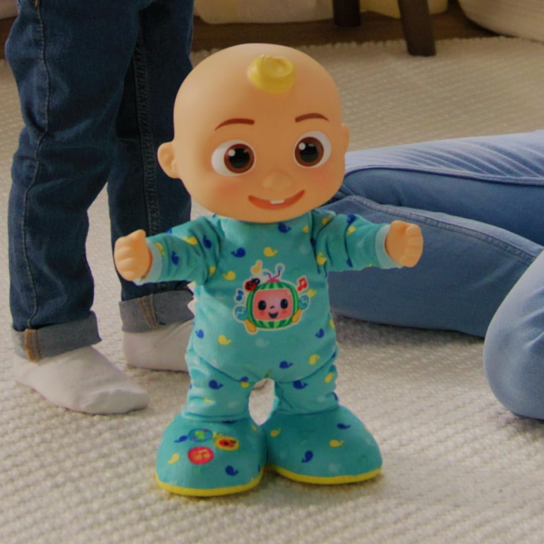 It’s time for the ultimate dance party with CoComelon’s Dancing JJ Feature Doll! Standing at 14” tall, JJ is the perfect dance partner for your little one. Press one of the three buttons on JJ’s right foot to activate three interactive play moves: Learn to Dance, Fast & Slow, and Freeze Dance. In Learn to Dance mode, JJ teaches your little one how to dance as he moves his arms up and down, slides from side to side, and bops along to the beat! Can you keep up with JJ? In Fast & Slow mode, JJ starts slow and then dances faster and faster to the tune of “Head, Shoulder, Knees, and Toes.” The fun continues in Freeze Dance mode, where JJ plays the iconic game, Freeze Dance, and calls out “Freeze!” and “Keep Dancing” for more interactive play! JJ’s pajamas light up as he dances, sings, and says fun phrases. Your CoComelon fan will love moving, grooving, and singing along with CoComelon’s Dancing JJ!