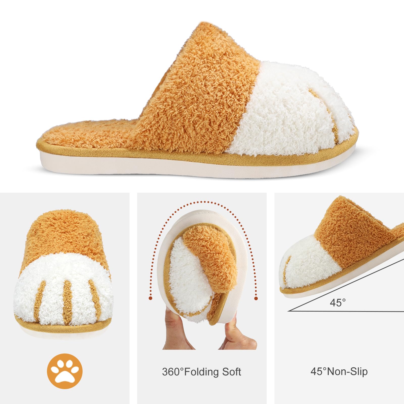 Cute and Funny: The cute cat paw design on the toe, combined with a two-color scheme, gives these animal slippers a playful and whimsical charm. Perfect for cat owners, they are an ideal choice for spending delightful moments with your beloved feline companion while wearing them.