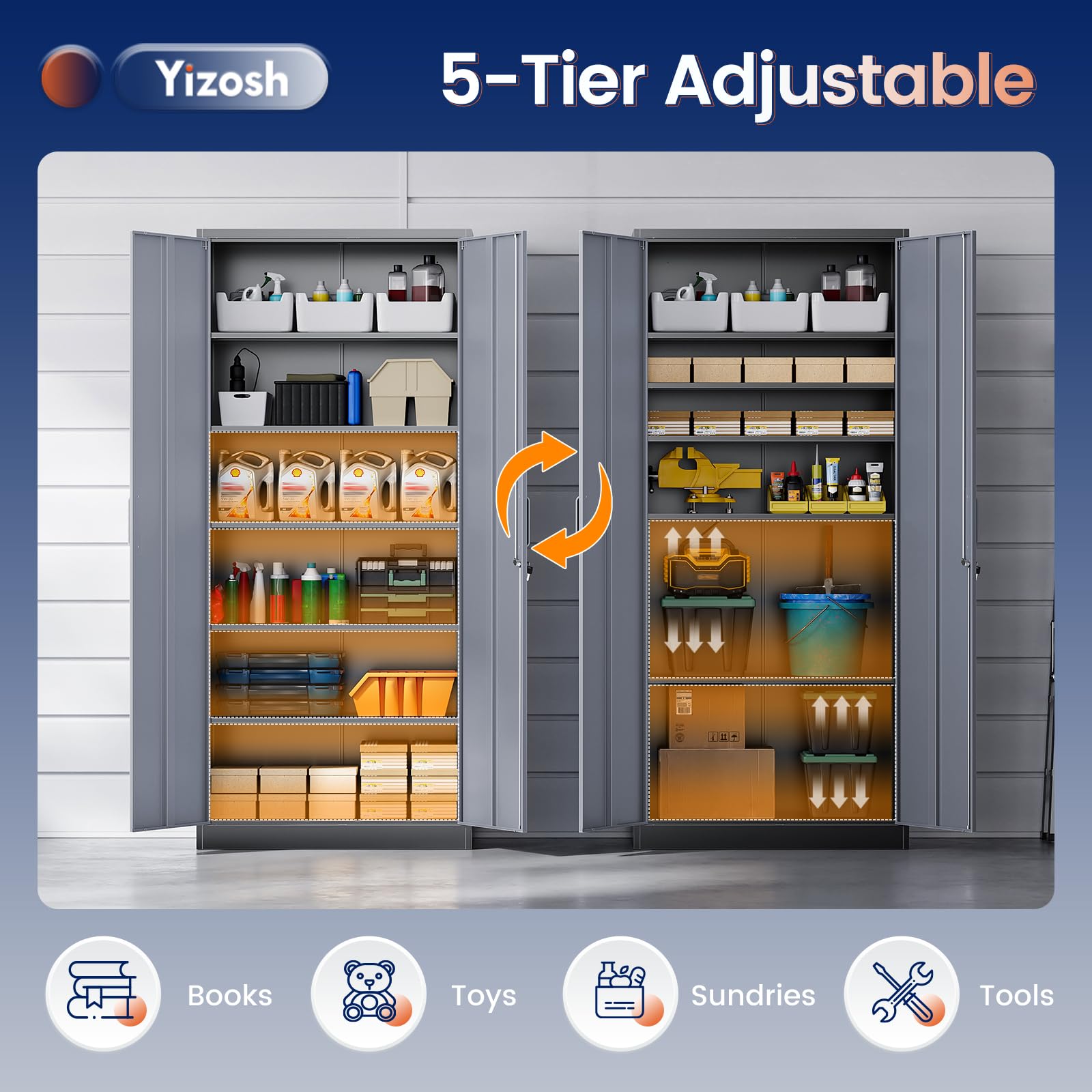 『PRACTICAL DESIGN』:Our tall metal cabinet equipped with lock and 5 adjustable shelves to provide adaptability and convenience. High-grade lock picking to secure valuables, two keys are included. Regardless of what your storage needs are, you have the ability to create a unique storage space to suit them.